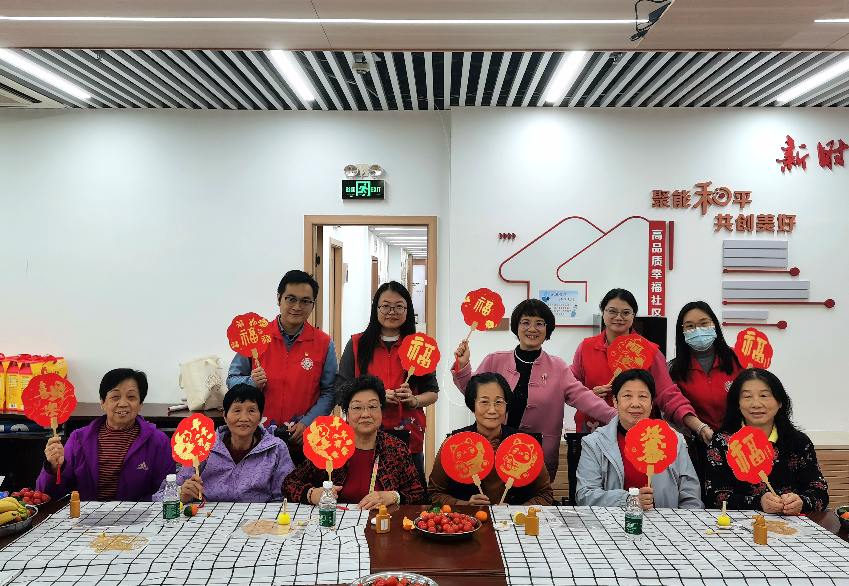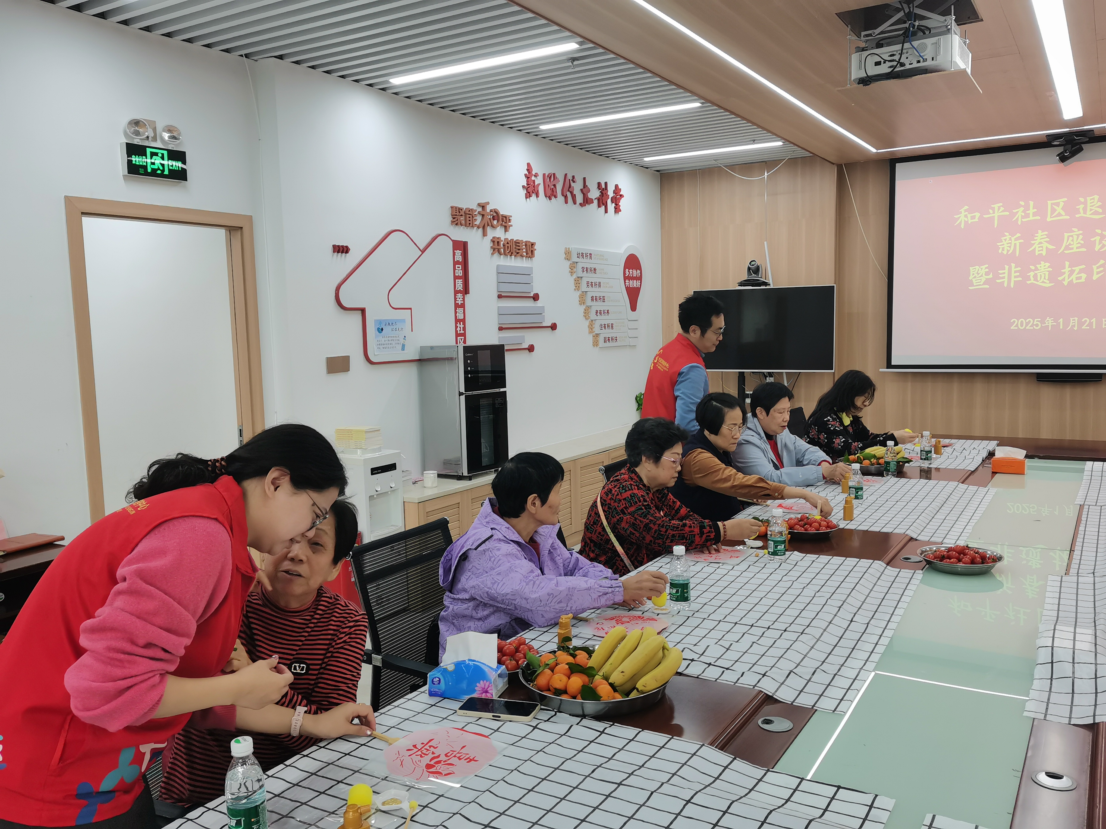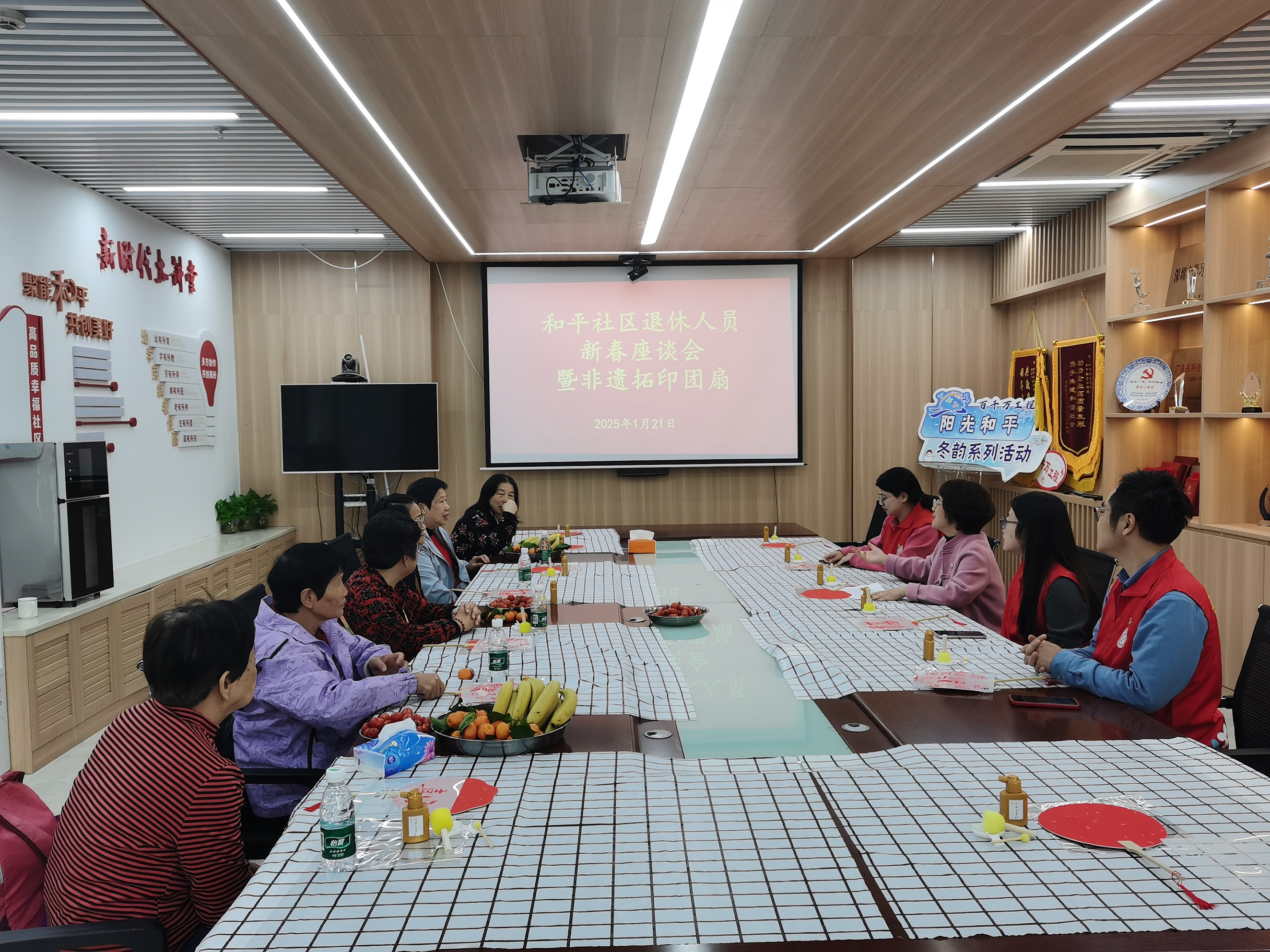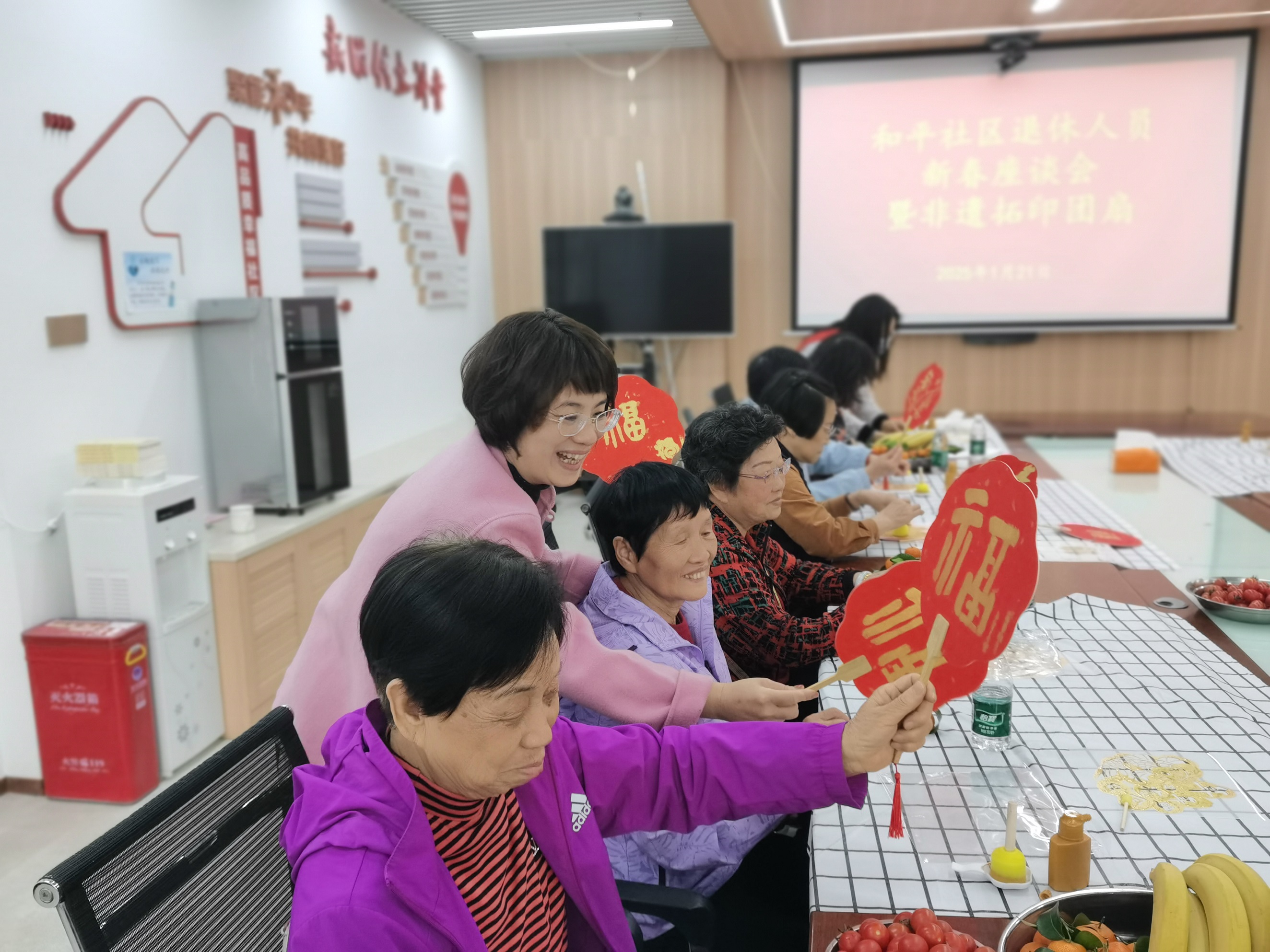 和平社区开展退休人员春节座谈会暨拓印团扇活动