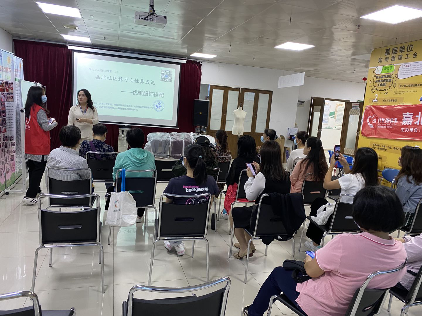 2020年10月30日上午,为了改善社区女性形象,增强社区女性自信心和个人价值,展现社区女性积极向上的精神,构建社区女性群体正向人际交往平台,增强社区女性群体以社区党委为中心的凝聚力,由嘉北社区党委,建中居委会主办,深圳市慈怀社工服务中心承办的民生微实事——魅力女性成长训练营项目之“魅力女性养成记”优雅服饰搭配技巧活动在深圳市罗湖区南湖街道嘉北社区东海大厦四楼举办。
