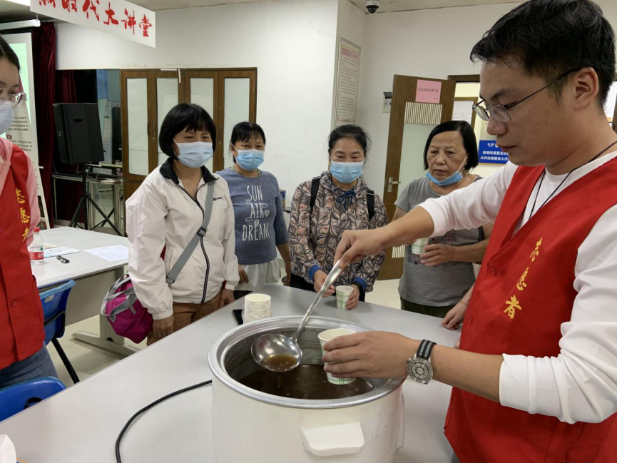 此次活动,现场给每位居民派发了《新型冠状病毒肺炎的中医防治读物》、《四季煲汤方与二十四节气茶饮方》和《深圳市中医药科普知识手册——艾灸》、清心润肺教学汤包以及玫瑰桑杞茶,本次活动还特别准备了“四红汤”,给每位居民品尝,深受居民喜爱。