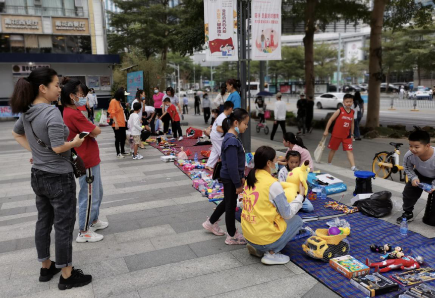 2020年10月15日下午,由南湖街道嘉北社区党委、嘉北居委会主办、深圳市社联社工服务中心承办的“能挑善淘.变废为宝”跳蚤市场民微项目在海燕广场顺利开展,活动旨在通过家中闲置物品的交换或交易,提升资源的利用率,促进社区居民间的交流与互动。