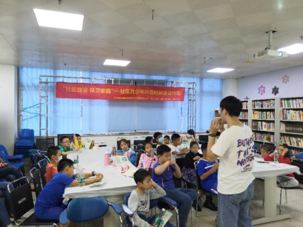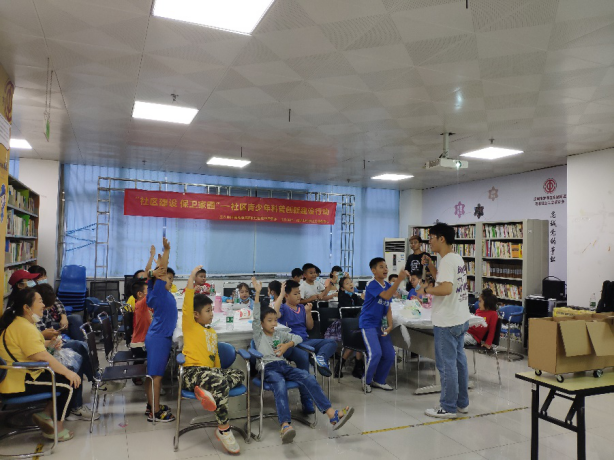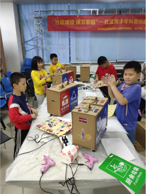 当天下午,本次课程在嘉北社区党群服务中心四楼活动室顺利开展。本次课程主题是垃圾分类知识讲座与垃圾分类箱制作。共计有25名社区儿童参与,此外还有若干名社区家长协同听课。