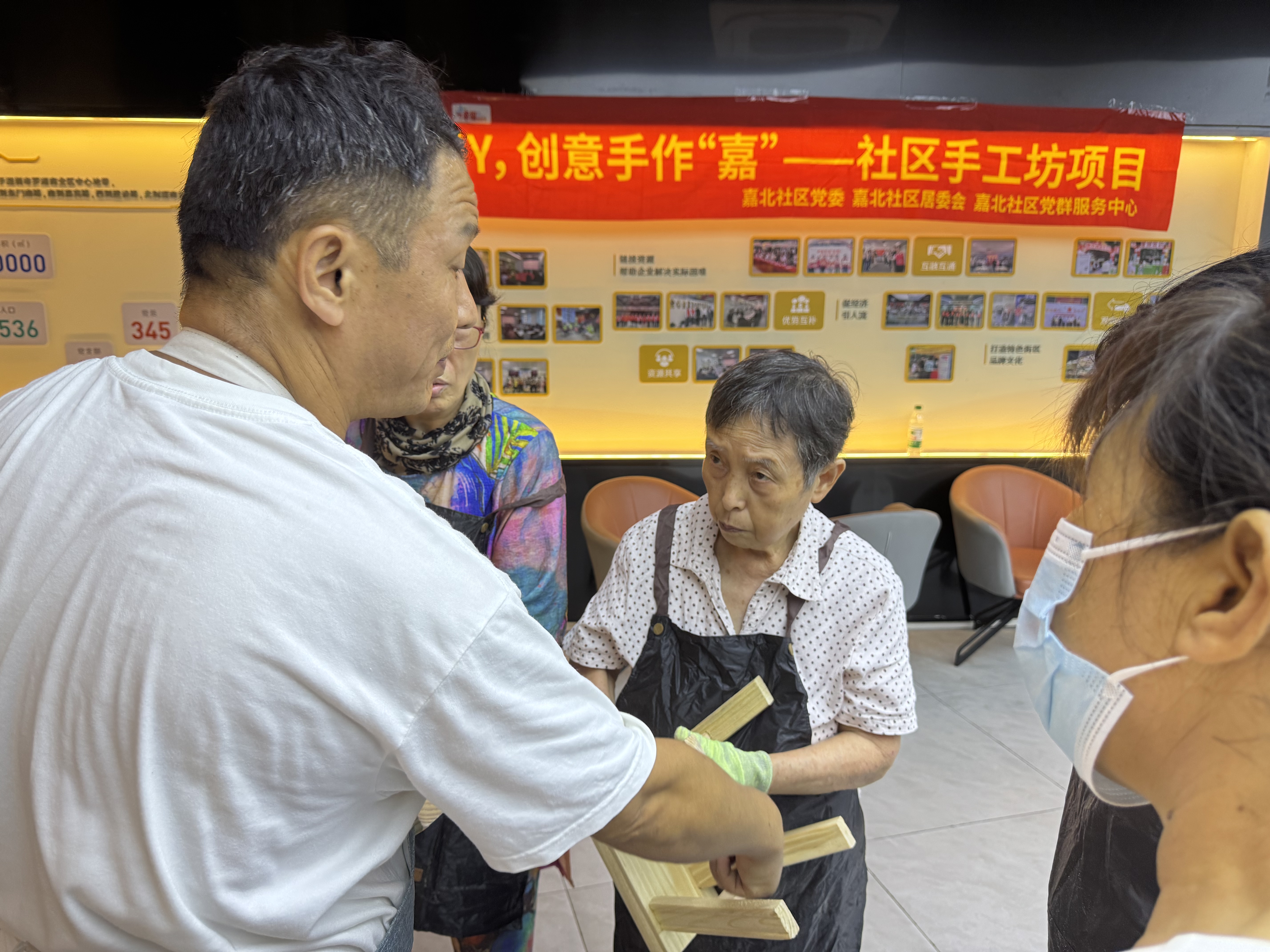 7月2日下午两点半,嘉北社区活动中心传来阵阵刨木声,民生微实事“巧手DIY,创意手作“嘉”——社区手工坊项目之小木凳专场热闹开启。二十位居民带着期待而来,在张老师的指导下,以原木为料,于锛凿斧锯间打磨生活温度,让传统木作技艺在掌心落地生根。