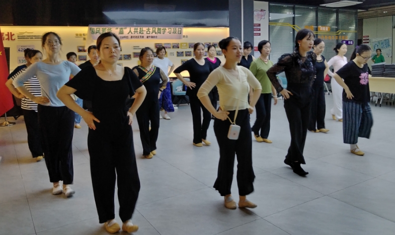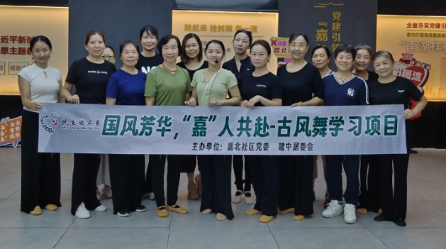 学员们专注投入,渐入佳境,经过数节课的磨合,大家不仅动作更加流畅自信,彼此间的默契也逐步提升。课堂氛围既认真又融洽。“动作越来越有感觉了,和姐妹们一起跳特别开心!”一位年轻学员兴奋地分享。多位学员表示,每周的舞蹈课已成为放松身心、滋养精神的愉悦时光。社区将持续提供优质平台,助力居民们在国风舞韵中不断精进,丰富辖区女性的文化生活。