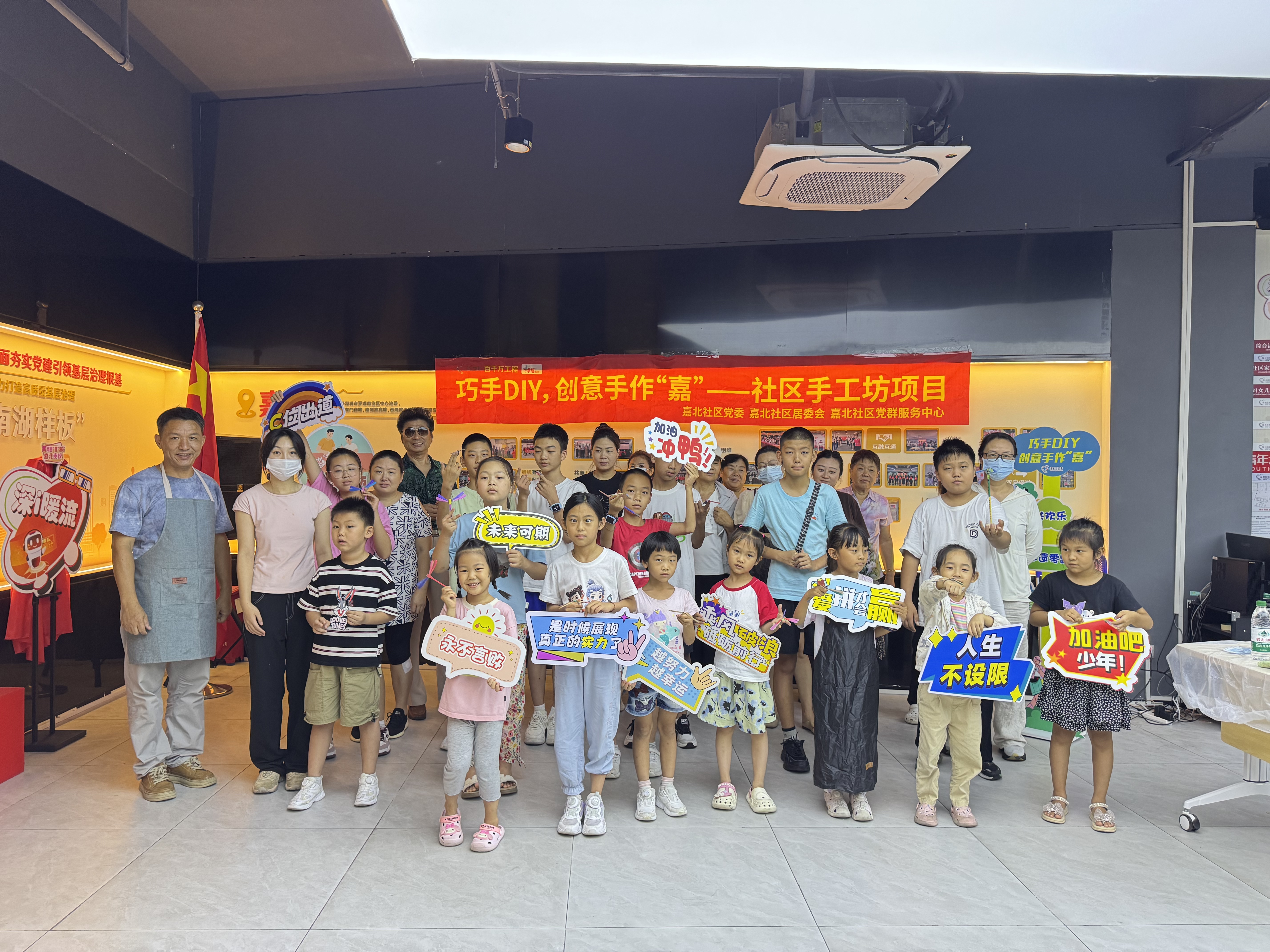 7月23日下午,嘉北社区活动室变身创意工坊,二十组亲子家庭齐聚一堂,共同参与民生微实事"“巧手DIY,创意手作'嘉'"彩绘竹蜻蜓木艺笔架活动。以传统竹蜻蜓为灵感,将童趣创意融入实用文具,让亲子时光在色彩与创意中流淌。