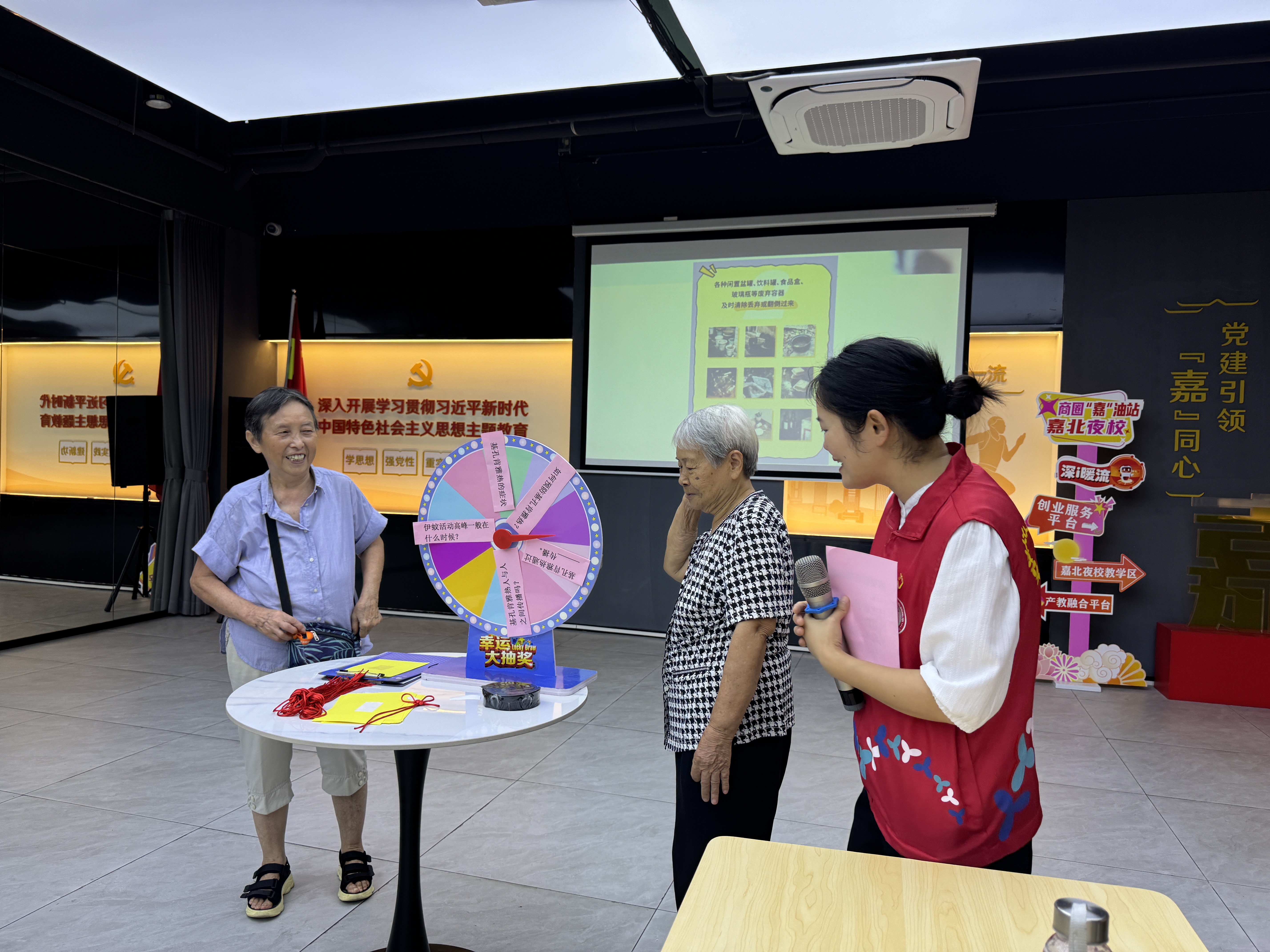 手指操结束后,社工见大家精神状态正好,便趁机普及起了基孔肯雅热的相关知识。“基孔肯雅热是由蚊子传播的,大家平时要注意防蚊,家里别积水,出门可以喷点驱蚊液。” 社工一边说,一边列举了发热、关节痛等典型症状,“要是出现这些情况,可别不当回事,及时去医院检查。” 居民们听得十分认真,有的还拿出手机记要点,吴叔点点头说:“这些知识实用,知道了才能早预防。”为了让居民巩固学到的知识,社工特意准备了知识问答大转盘,让居民在游戏中,提升对基孔肯雅热的认知和防范意识。
