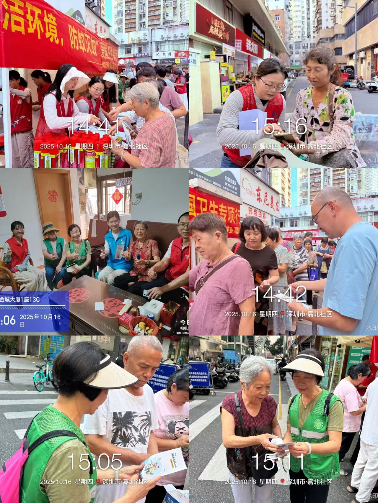 罗湖家园网讯:为普及基孔肯雅热防治知识,2025年10月16日下午,南湖街道公共服务办联合嘉北社区多方力量,成功开展“清洁环境,防蚊灭蚊”爱国卫生专项宣传活动。活动通过现场讲解、发放资料及礼品等形式,向居民科普防蚊技巧与疾病危害;同时,入户小组深入独居长者家中进行上门检查和宣讲,有效提升居民的防蚊意识与自我保护能力。