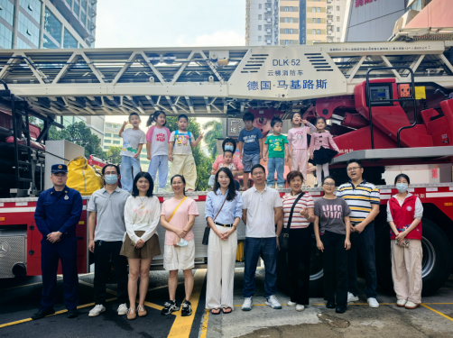 活动当天,在社区社工的精心组织和全程陪护下,孩子们怀着兴奋与好奇的心情走进了消防救援站。社工积极发挥桥梁纽带作用,与消防员密切配合,引导孩子们有序参观。面对高大的消防车、各式各样的消防器材装备,孩子们充满了好奇。消防员用浅显易懂的语言介绍了各种设备的功能,社工则从旁鼓励孩子们大胆提问,并协助他们进行穿戴消防服、接触消防水带等体验活动,当了一回“小小消防员”。