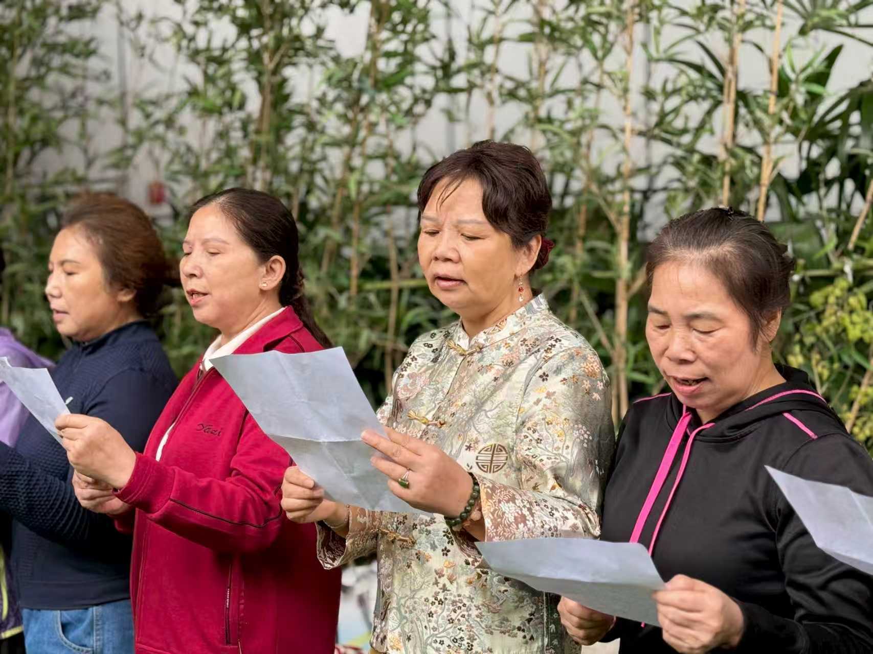 罗湖家园网讯:初冬暖阳,映照满腔热忱。11月18日下午,嘉北社区嘉人空间歌声朗朗、生机盎然,一场银发长者歌颂十五运会的合唱活动正在展开。这是一场“全民全运、同心同行”的生动实践,一次社区温情与时代脉搏的深度相拥。
