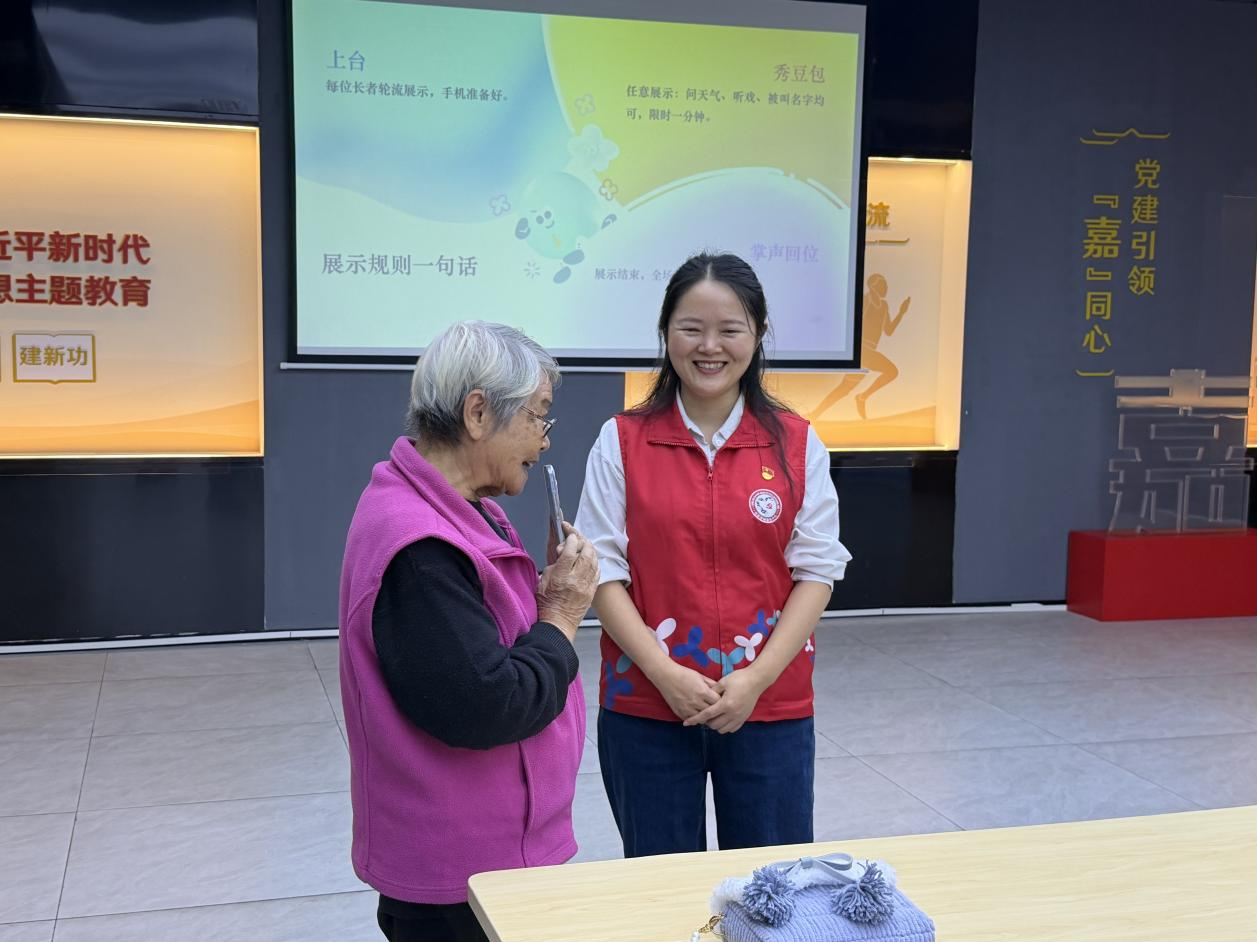 在最后一节活动中,社工策划并主持了温馨的结业展示会。“我的数字老伙伴”展示环节,长者们自信地点播歌曲、询问问题,与AI流畅互动;“我的巧手代表作”展示环节,大家自豪地展示编织成果,分享心得。最终,社工为每位学员颁发了“银龄智能学习之星”荣誉证书,见证了他们的成长与蜕变。