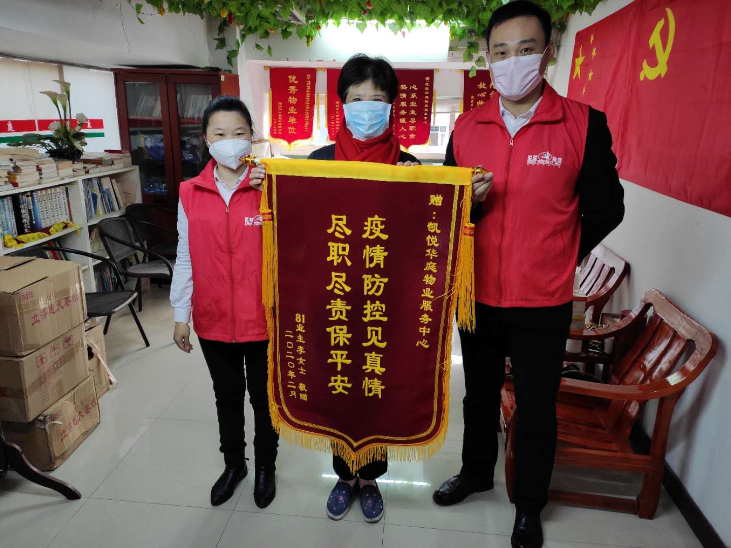 凯悦华庭业主送锦旗给信和物业凯悦华庭服务中心
