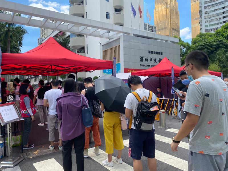 文锦社区志愿者参与文锦中学省考疫情防控工作图一