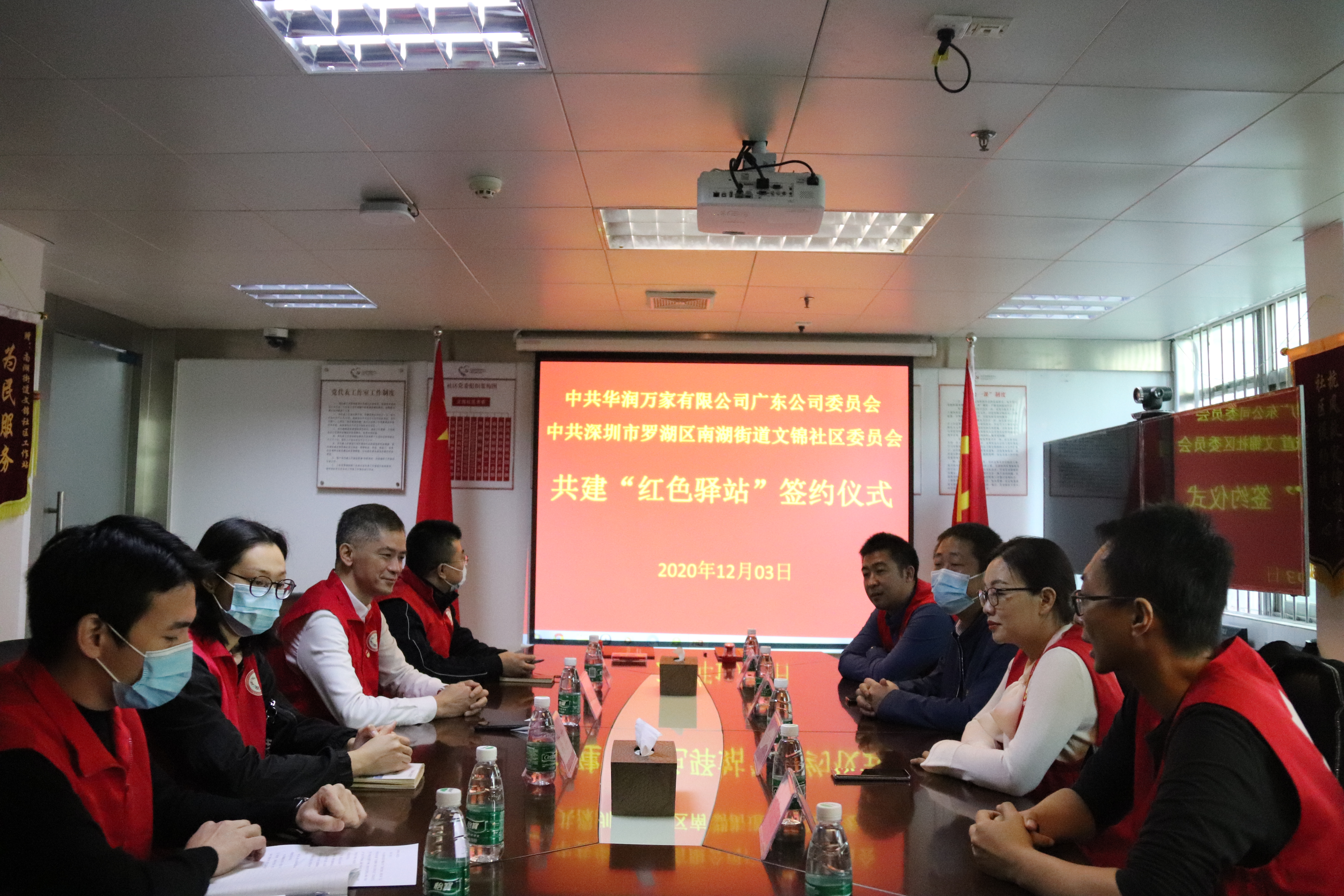 文锦社区党委、华润万家广东公司党委结对共建“红色驿站”座谈会暨签约仪式