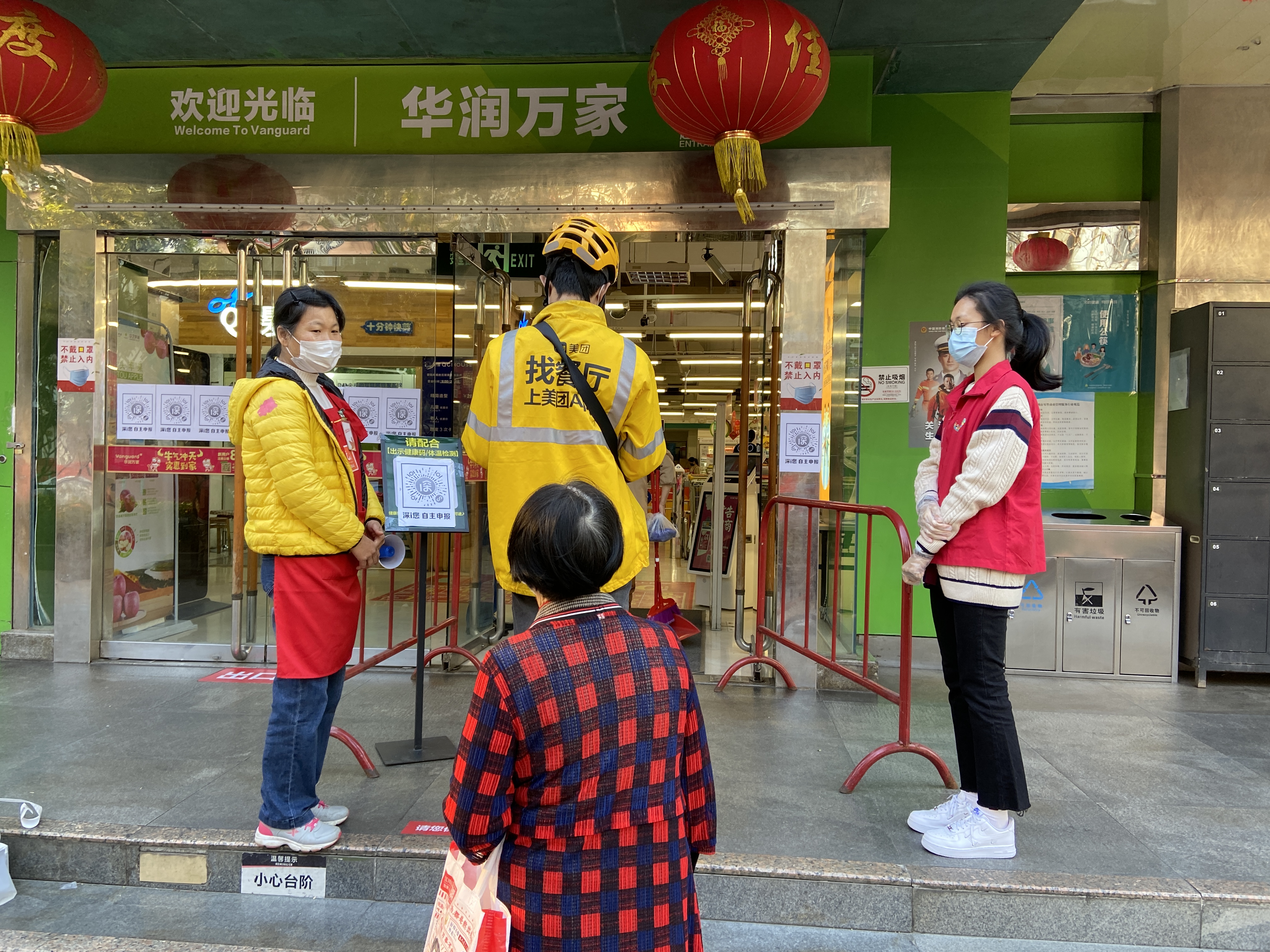 文锦社区志愿者华润万家超市出入口疫情防控图一