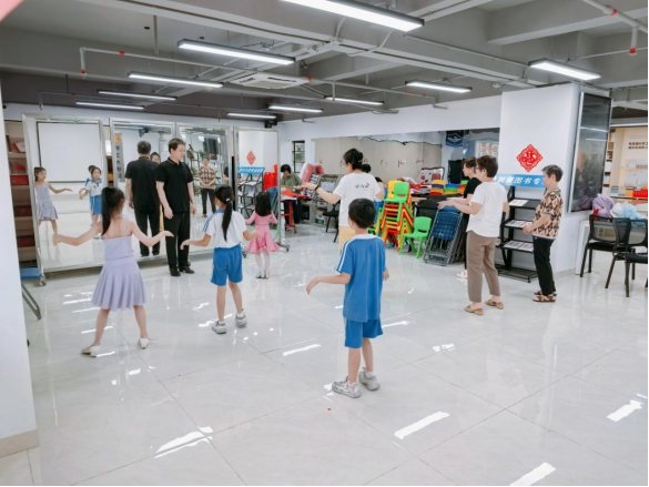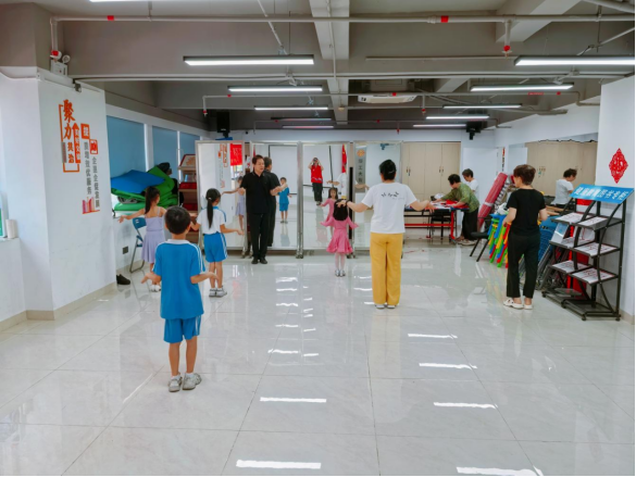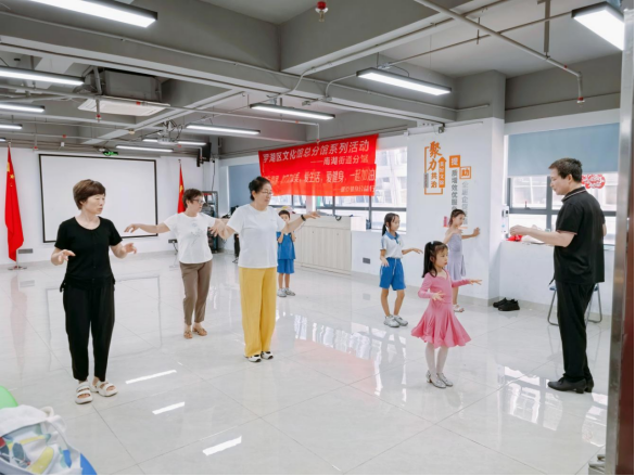 自今年4月开课以来,覃兴荣书记以专业生动的教学方式,带领孩子们从基础站姿、手势发力起步,逐步掌握恰恰方形步、伦巴延迟步等核心技巧。在最后一期课堂上,小学员们专注投入的身影吸引了几位参与社区活动的居民驻足。当欢快的音乐旋律响起,几位奶奶情不自禁跟随覃书记的示范摇摆起舞,银发与童颜在舞步中交织成跨越代际的艺术共鸣。“看孩子们跳得这么带感,我们也年轻了一把!”一位奶奶笑着擦去额角的汗珠。课程尾声,小学员们集体展示本学期所学舞段,挺拔的背脊、精准的节奏赢得全场热烈掌声。