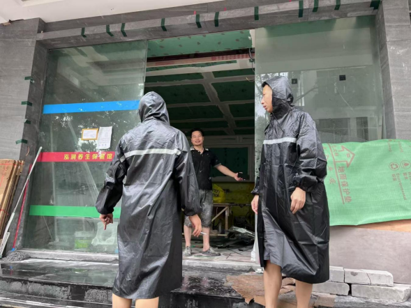 街道社区四级领导干部率先奔赴现场,实地督导防汛工作。在应急避难场所,指挥组细致查看物资储备与人员安置情况,确保转移群众得到妥善照顾;在积涝路段,众人冒雨清理倒伏树木、疏通排水设施,保障道路畅通。风雨中,党员干部冲锋在前的身影成为最坚实的防线。