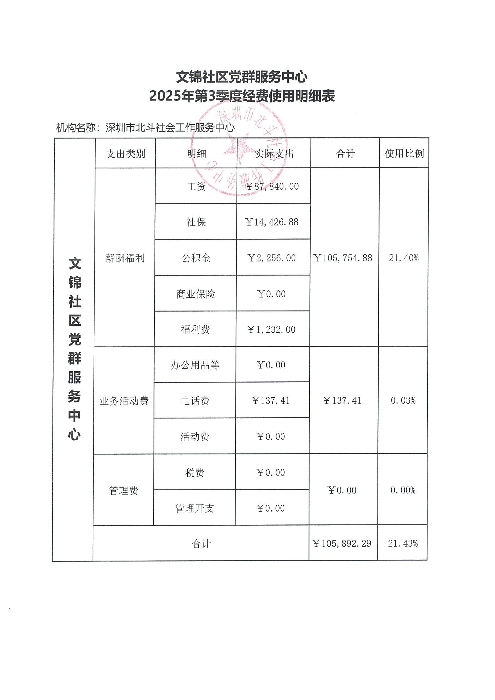 文锦社区2025年第3季度经费使用明细表