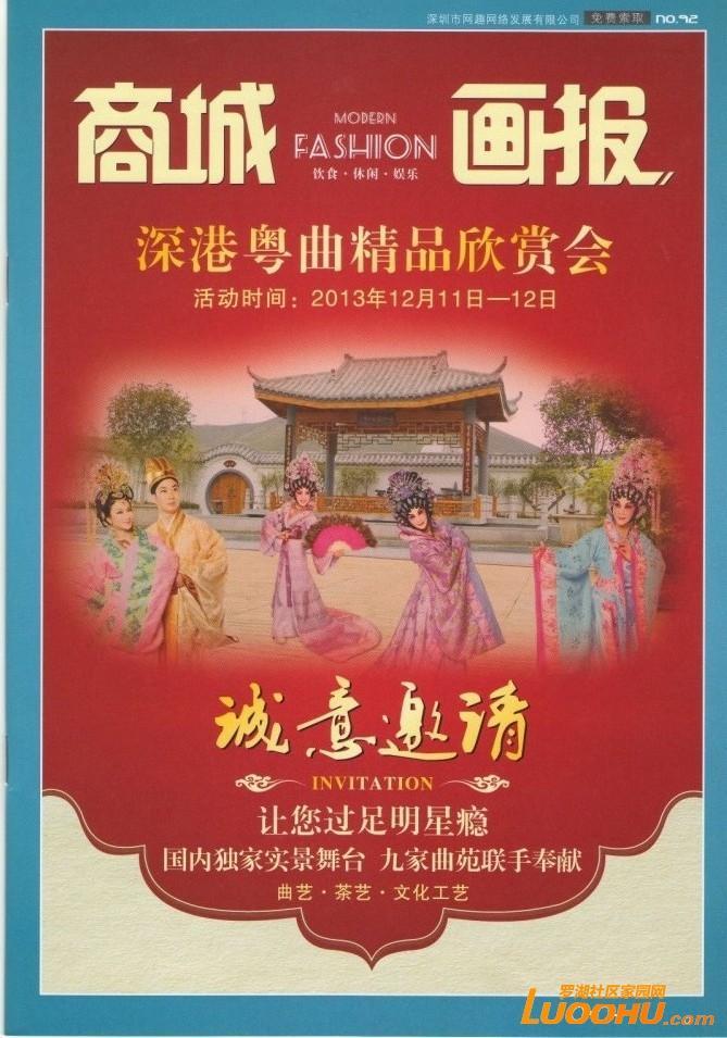 12月11日以及12日下午(14:30开始),南湖街道罗湖桥社区罗湖商业城内一场深港粤曲精品欣赏会等候着大家。本次活动由南湖街道办主办,金罗湖商业城物业管理有限公司以及南湖街道韵之声粤剧社承办。届时大家可以在罗湖商业城六楼南拱曲艺园欣赏别致的园林和专业的粤曲,现场还设有茶艺和民间手工艺品摊位。联系人:罗湖桥社区工作站 许小姐,联系电话:82221933.