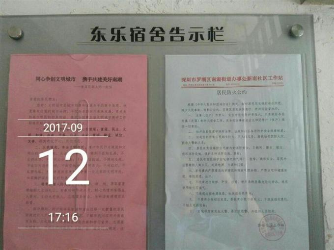 新南社区工作人员在辖区内张贴“居民防火公约"