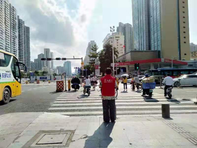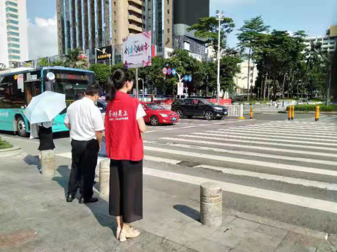 上午高峰期安排2名义工在深南东路文锦南路开展创文交通劝导志愿服务。