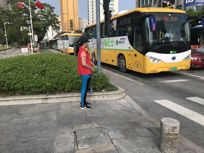 新南社区组织义工早高峰在深南东路与文锦南路交叉路口进行交通文明劝导。