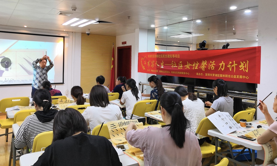 目前“书写人生--社区女性馨活力计划”系列书法培训已经完成了第一阶段的教学,经过前五堂课的学习学员们逐步对楷书有了一定认识,无论是书写姿势,还是起笔行笔收笔以及横竖撇捺都取得了长足的进步,通过这一系列的书法培训不仅丰富了社区女性居民的业余文化生活,提升了社区文化学习氛围,也推动了学习型社区的创建。
