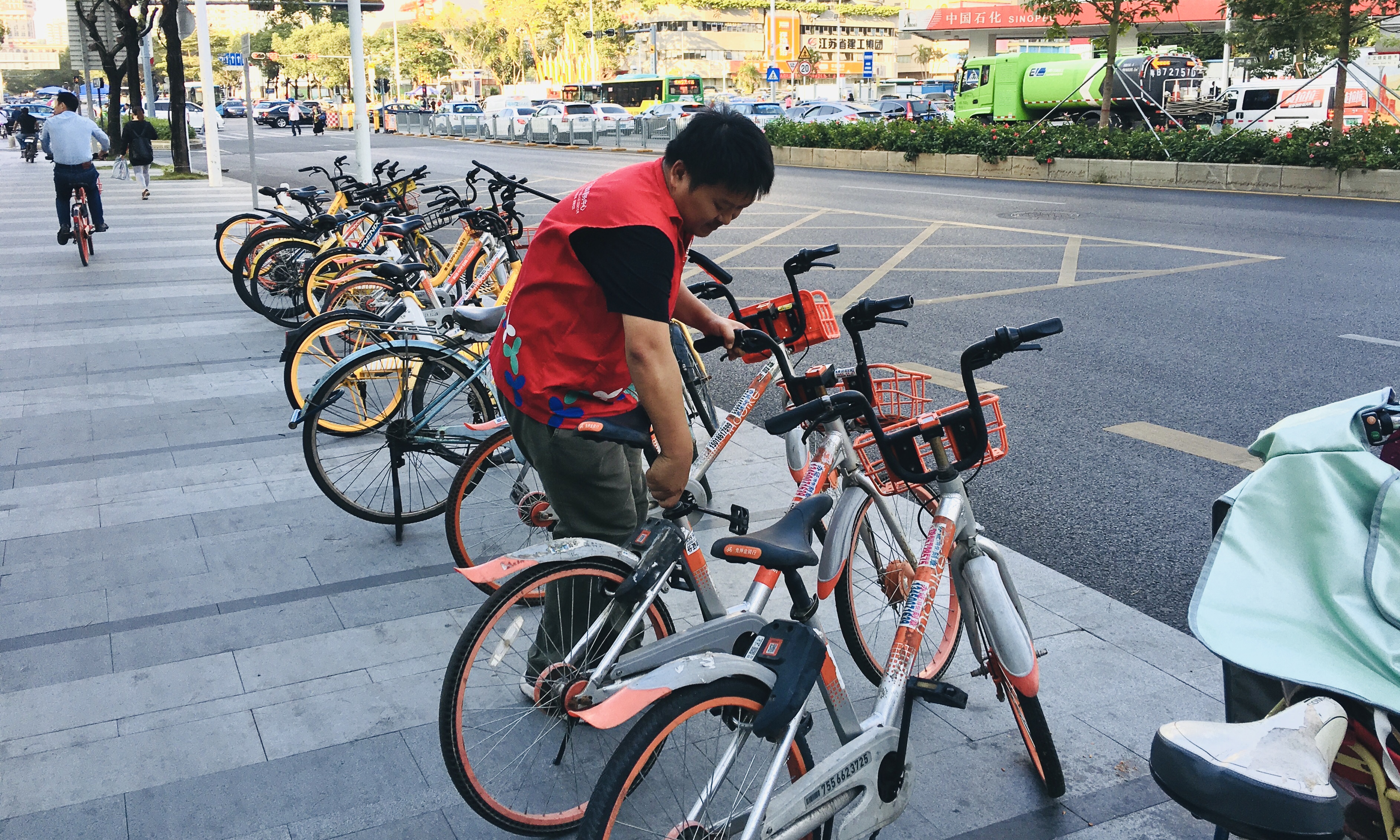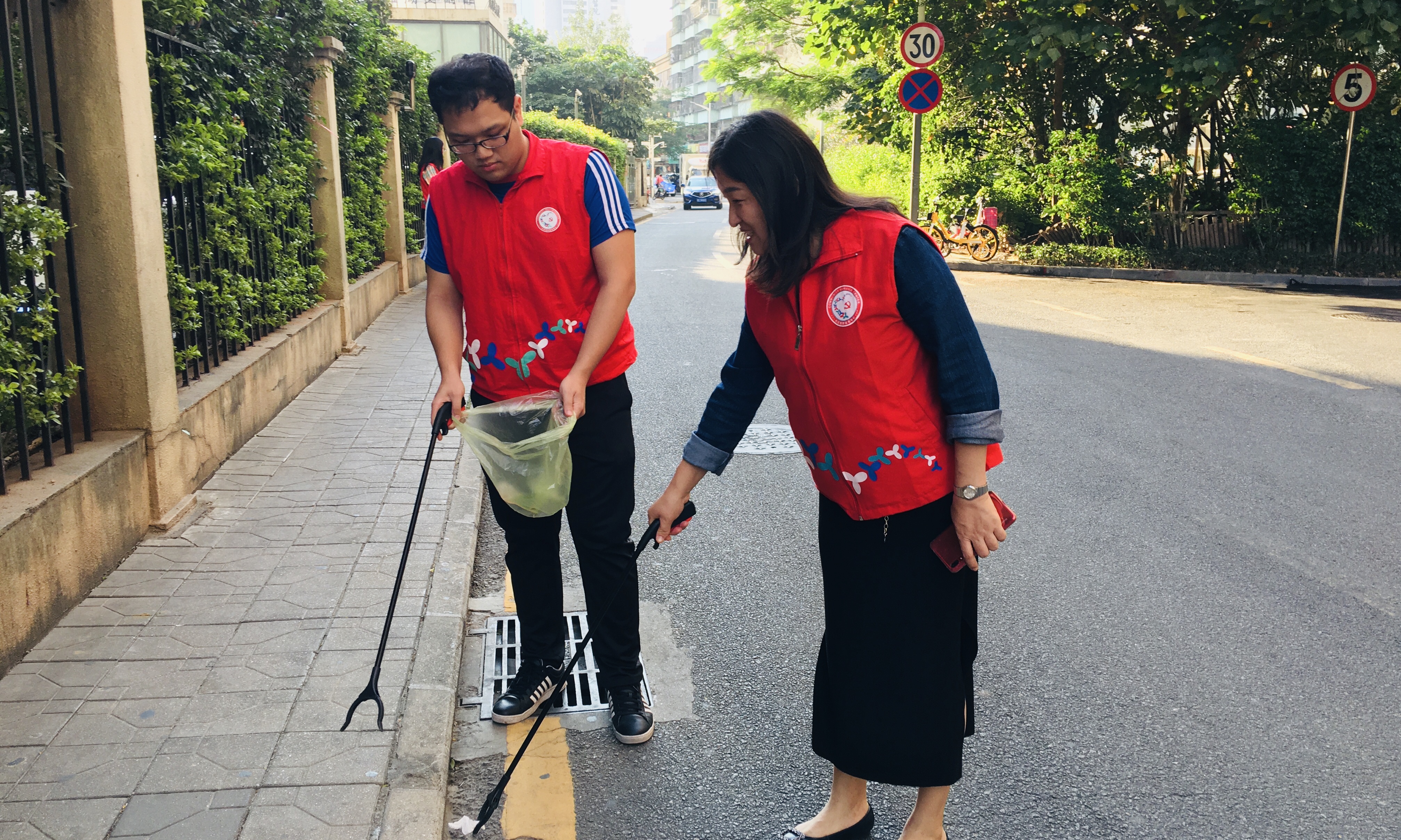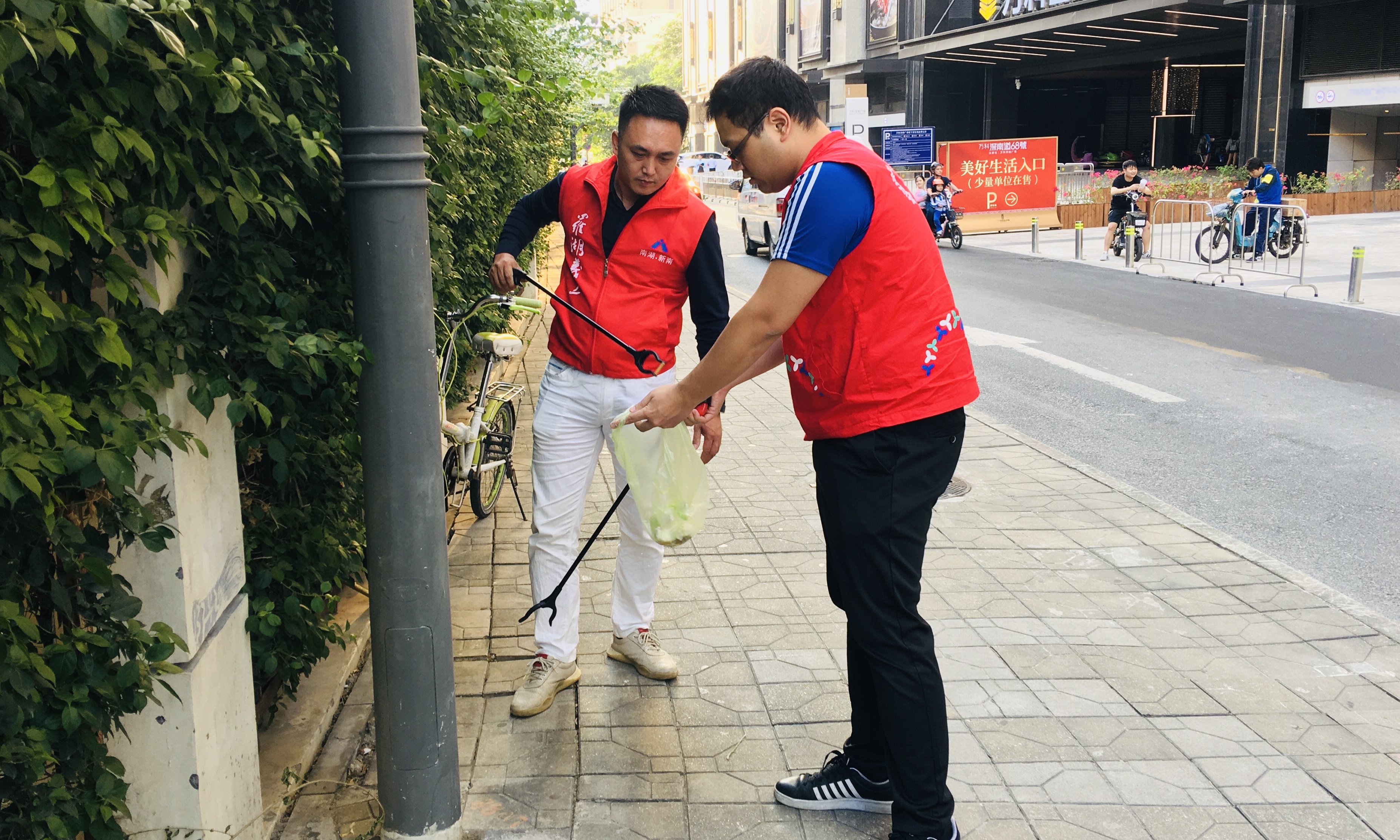 此次党员志愿者服务活动,充分结合创文实地考察的重点内容,对主次干道上共享单车进行整理,对内循环道路的环境卫生进行重点清扫,对老旧小区的卫生死角进行了垃圾大清理。活动开展过程中,大家身着红色的义工服,认真清扫和工作,也吸引了社区居民积极加入进来,共同动手营造社区良好的环境卫生。
