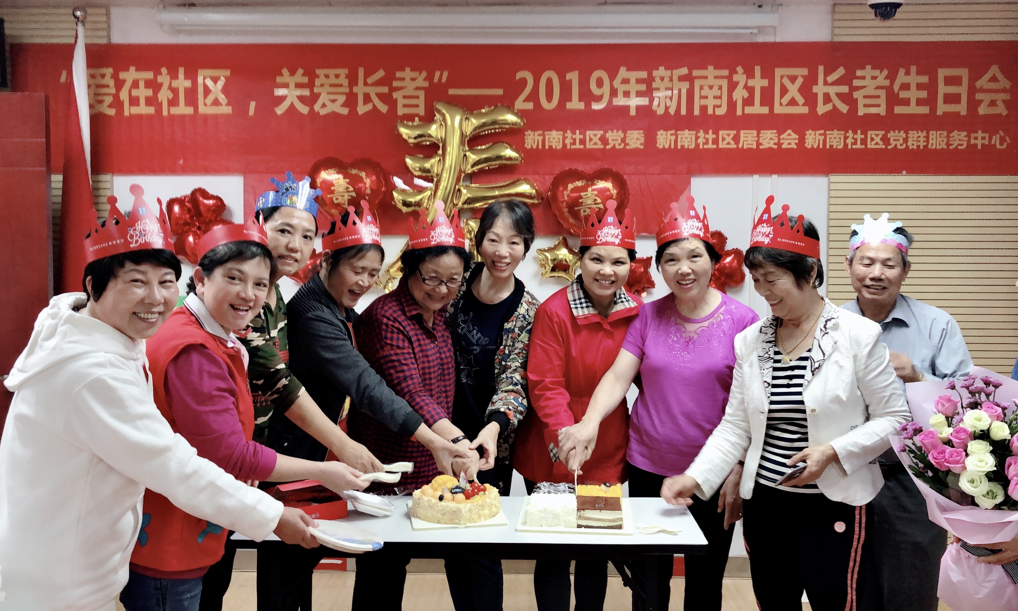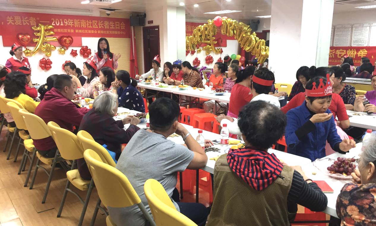 罗湖家园网讯,为增进社区老年人对社区的归属感和融入感、为老年人搭建交流平台,促进居民之间的认识、沟通与了解,新南社区党委、新南社区居委会、新南社区党群服务中心于2019年11月21日14:30在新南社区党群服务中心多功能室举办了“爱在社区,关爱长者-2019年新南社区长者生日会”第四季度生日会。活动一共吸引了50名社区长者前来参加,其中包括第四季度生日的20位寿星。