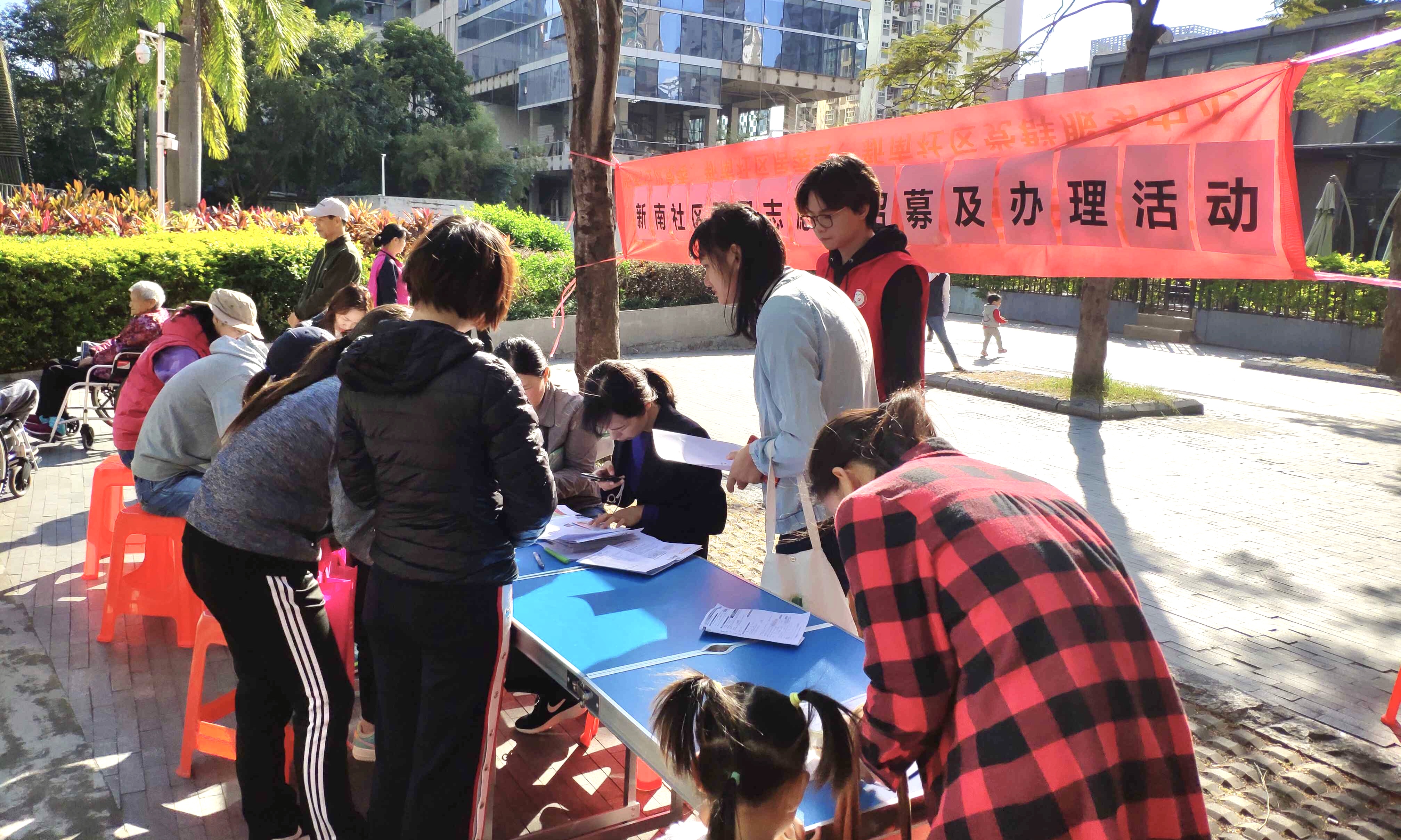 罗湖家园网讯,为巩固主题教育学习效果,鼓励和引导党员群众广泛开展志愿服务,在社区营造关爱、志愿、奉献的服务氛围。12月2日上午,新南社区党委、居委、党群服务中心在创意文化广场开展志愿者招募及义工证办理活动。