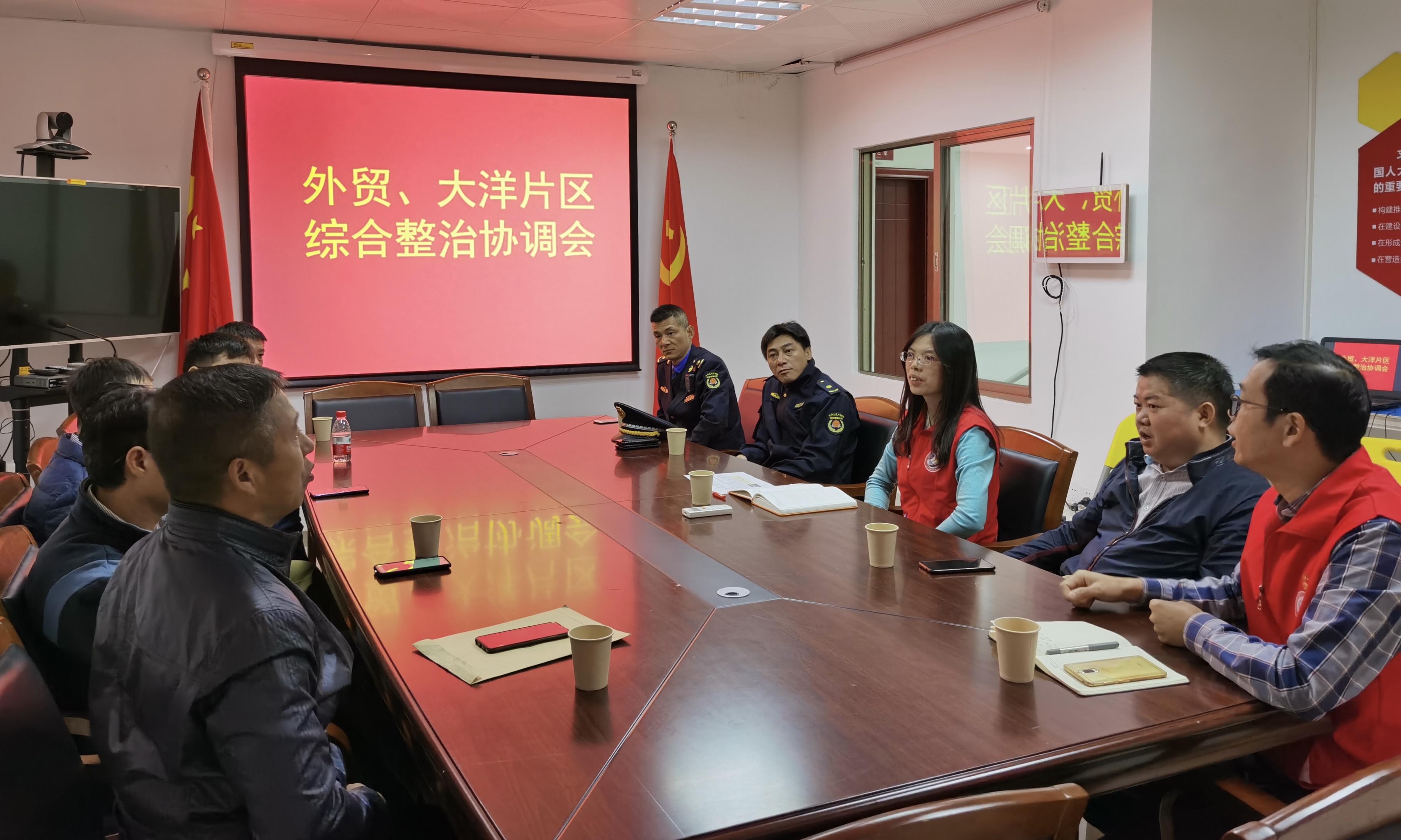 罗湖家园网讯,12月5日上午,新南社区联合街道执法队组织外贸、大洋片区五家物业单位进行综合整治第二次协调会,就片区综合整治面临的问题和困难进行了沟通协调。街道执法队副大队长马辉雄、三中队中队长张远阳及社区工作站站长、副站长与五家业主进行了深入探讨。马队要求,各单位要加强沟通协调,就当前存在的环境卫生问题、地面坑洼、垃圾分类、电线乱拉等问题,必须高度重视,严格按照市、区检查要求进行整改。针对五家业主共同管理面临的现实问题,马队提出通过统一管理提升环境卫生水平,为商家和住户创造良好的营商居住环境,提升居民满意度。