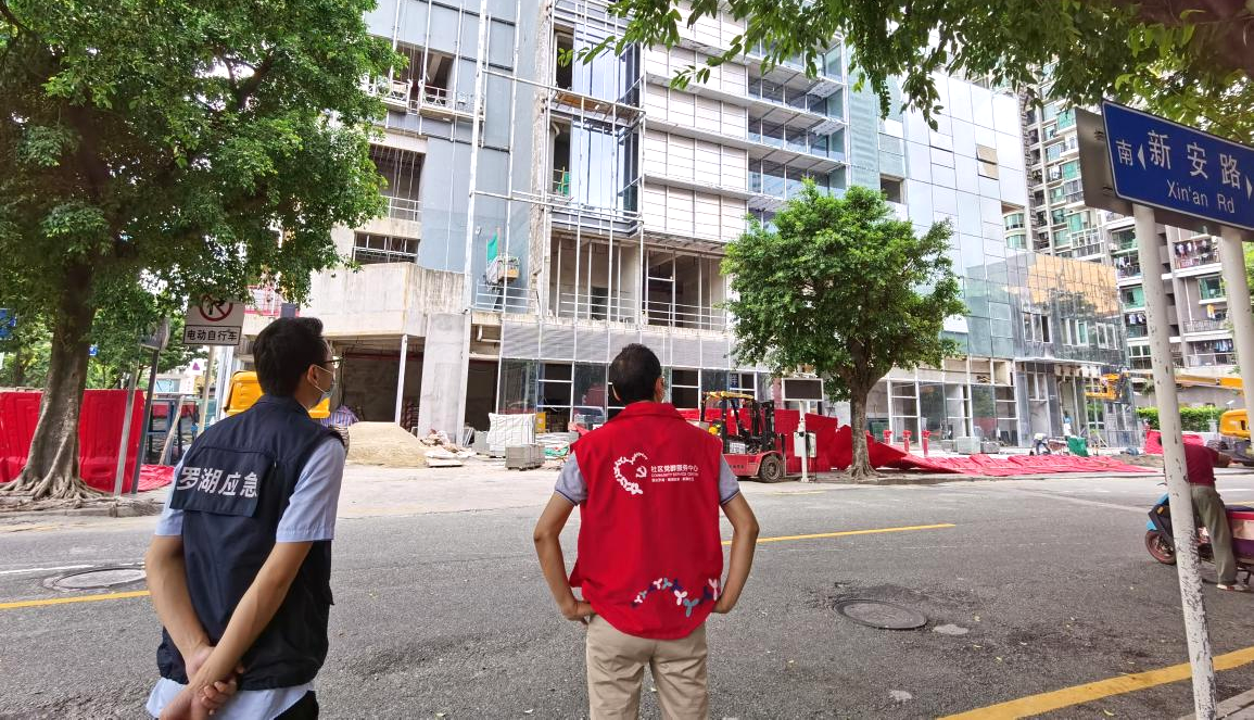 罗湖家园网讯:6月24日下午,新南社区工作人员开展端午节前安全大排查工作。社区工作人员分别对辖区内老旧小区、在建项目、三小场所及人流密集场所进行了走访检查。社区工作人员再三要求,物业管理单位合理安排节假日值班制度,落实主体责任,自觉开展节前自查自纠,隐患要跟踪整改;防范可能的强降雨天气及其影响;提醒住户要及时清理阳台上的杂物,以免高空坠物。毫不放松坚持疫情防控常态化要求,加强密闭空间的消毒频率,做好人员扫码登记与现场人流管控,防疫与安全两手抓实。
