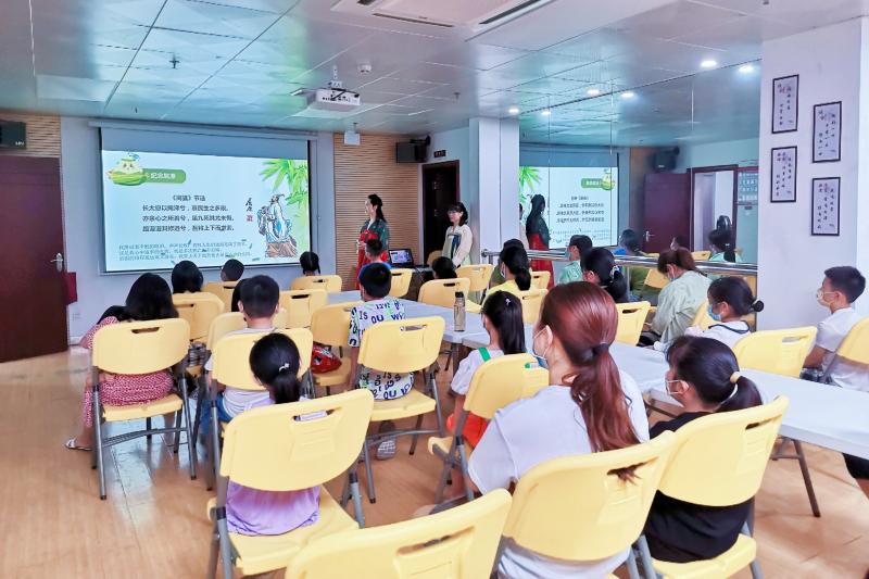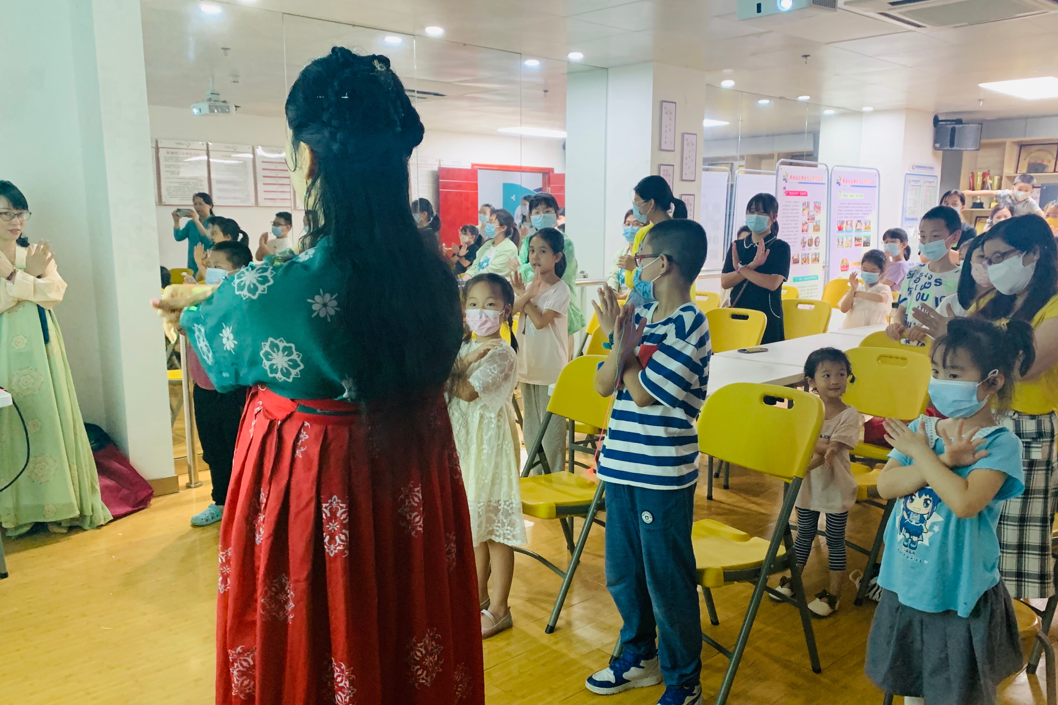 活动首先由国学老师讲述端午节的故事,用故事传递文化,引人入胜。如爱国诗人屈原、孝女曹娥等故事,帮助亲子们更好的感受端午节的文化价值和意义,进一步理解中华民族几千年来对于家国天下和对于忠诚至孝的尊崇。随后,国学老师还现场教授端午即事舞蹈,伴随着悠扬的音乐,同时开始学习香囊制作。亲子们配合默契,折叠布料、穿针引线、填充草药,环环相扣,最后孩子们把做好的香囊赠给妈妈,并送上真挚的祝福。