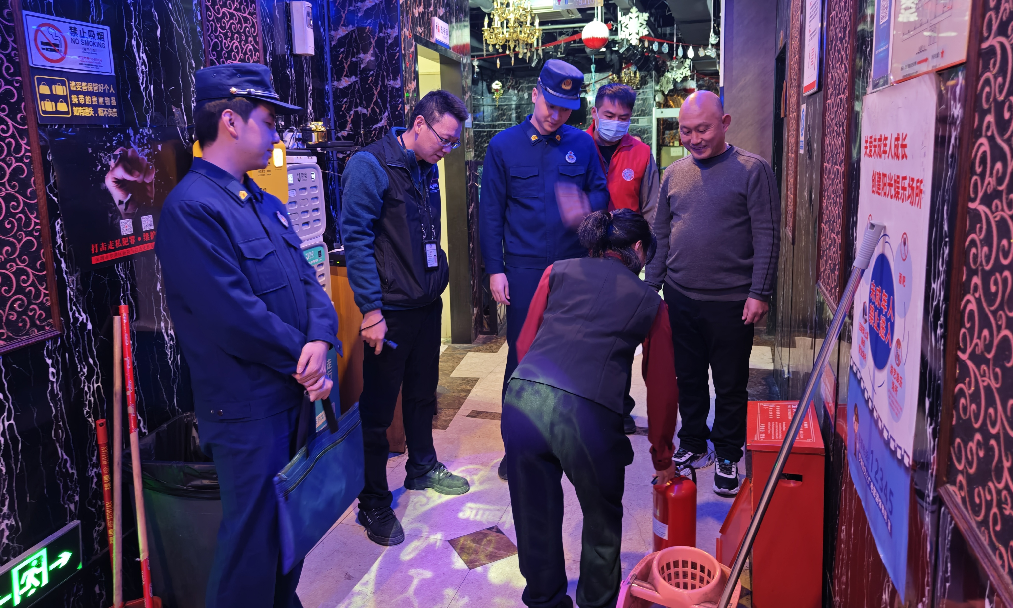 罗湖家园网讯:为全力做好节日期间安全防范工作,营造安全稳定的社会环境,12月25日晚,新南社区联合辖区小型消防站开展消防安全夜查行动。本次行动重点对酒吧、餐饮场所、公共娱乐场所等各类重点场所开展集中排查。行动共巡查“三小场所”12家,娱乐场所4家,发现隐患5处,现场整改5处。下一步,新南社区将对检查发现的隐患以及整改情况进行“回头看”,切实落实消防安全隐患动态清零、闭环销号。