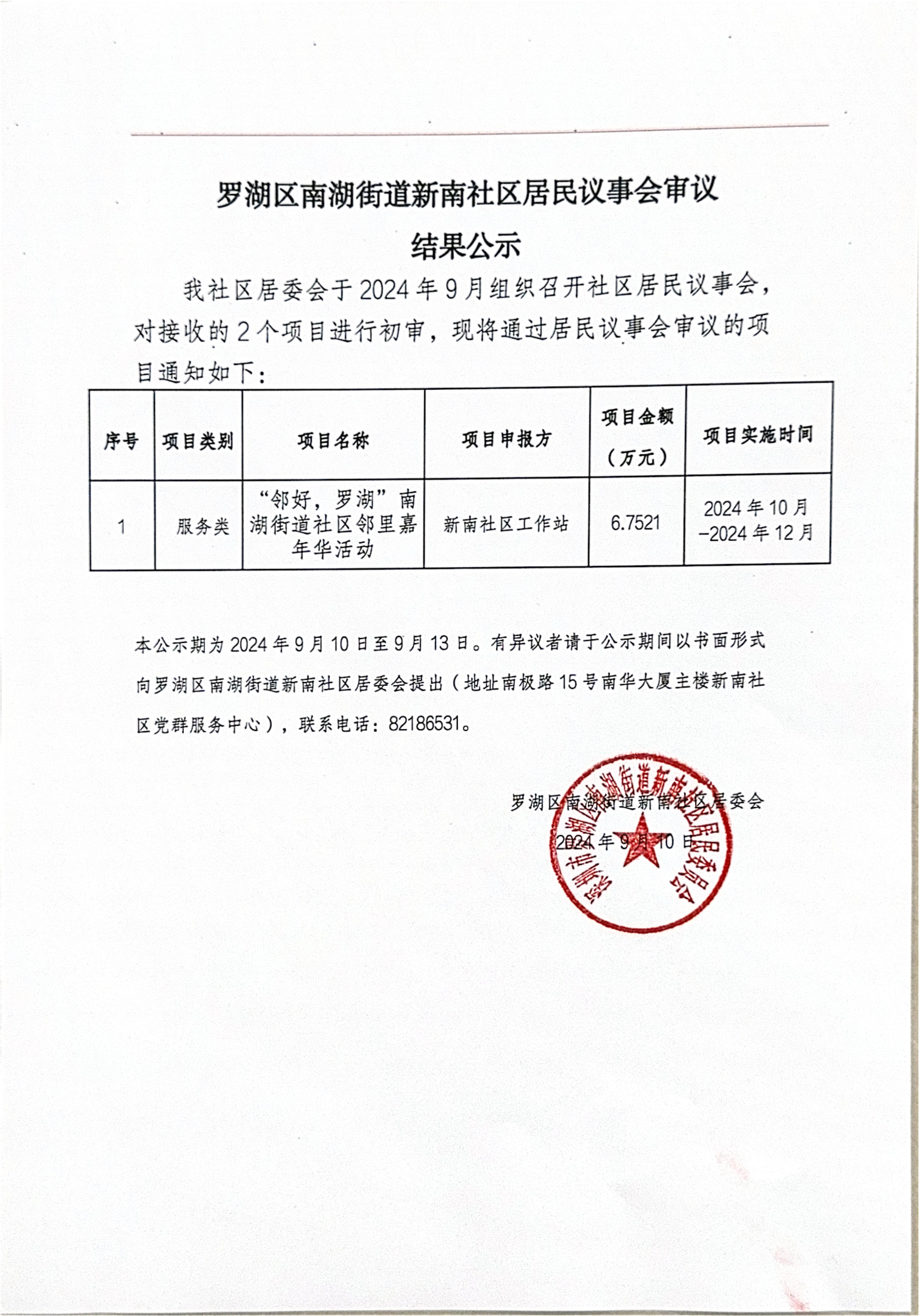 罗湖家园网讯:罗湖区南湖街道新南社区居民议事会审议结果公示