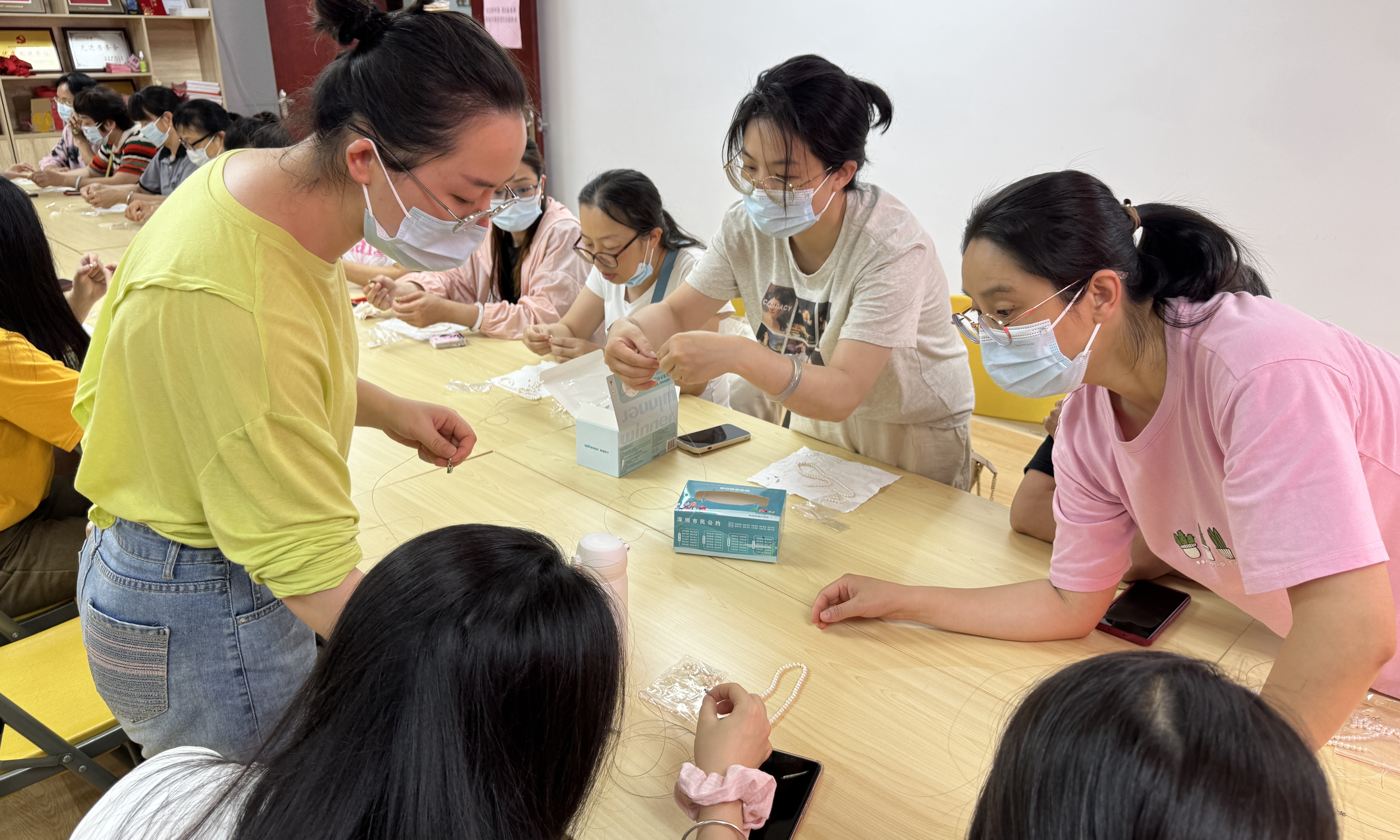 活动现场,手工老师围绕饰品项链制作进行细致的实操指导。从串线技巧、打结方法到配饰搭配,老师通过分步演示与一对一指导,带领职工们逐步完成设计与制作。职工们全神贯注地挑选珠子、构思造型,将个人创意巧妙融入穿针引线中,很快,晶莹的串珠在她们的巧手下变成了独一无二的项链。活动还特别设置了作品展示与分享环节,职工们相互欣赏彼此的成品,积极交流创作思路,在分享中碰撞出灵感的火花,进一步提升了对美的感知和创作能力。