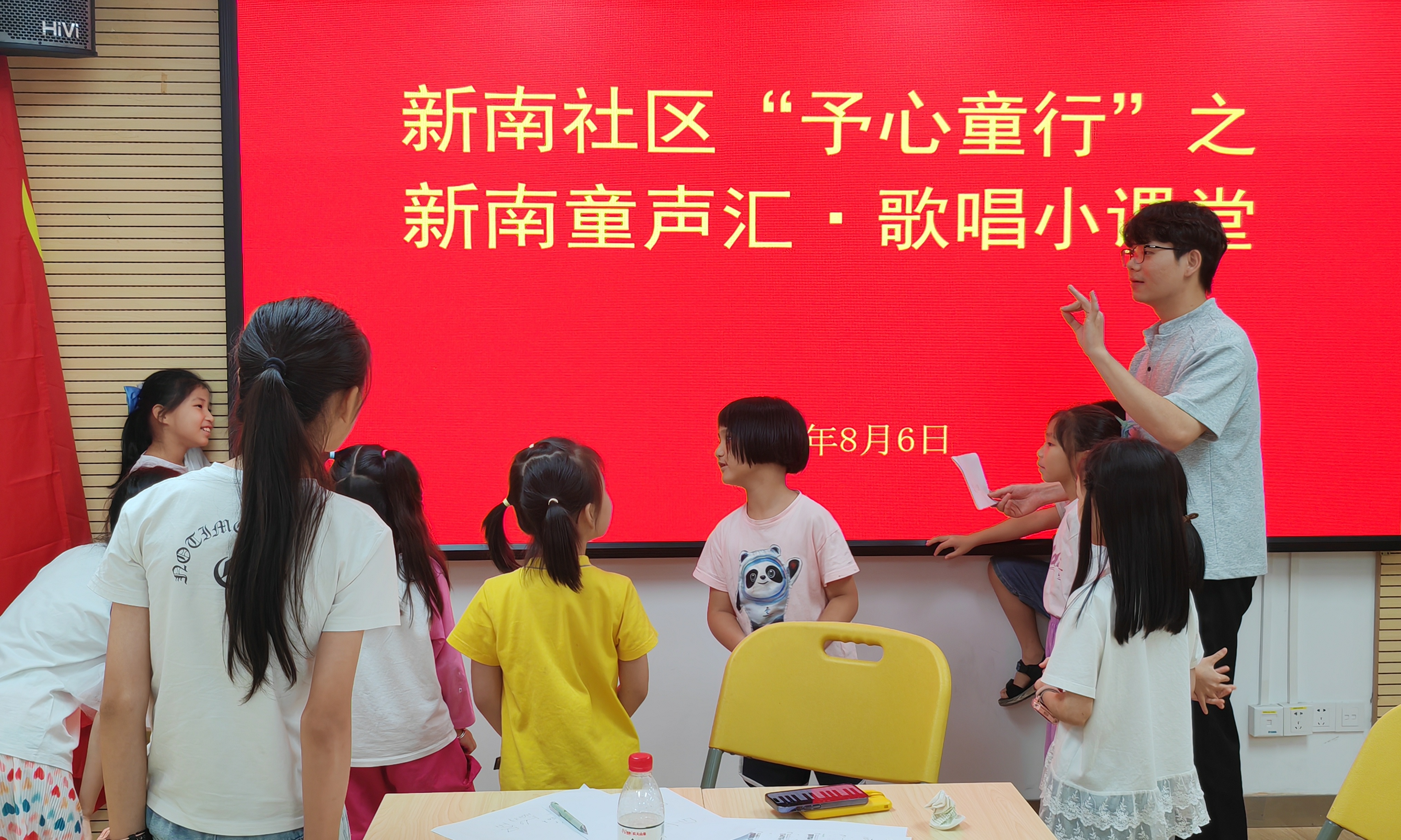 罗湖家园网讯:为了丰富社区儿童的暑期文化生活,培养孩子们对音乐的兴趣与热爱,新南社区携手深圳世纪星辉文化影视传媒有限公司于2025年8月6日下午在新南社区党群服务中心开展“予心童行”之新南童声汇・歌唱小课堂,活动吸引了10余名小朋友参加。