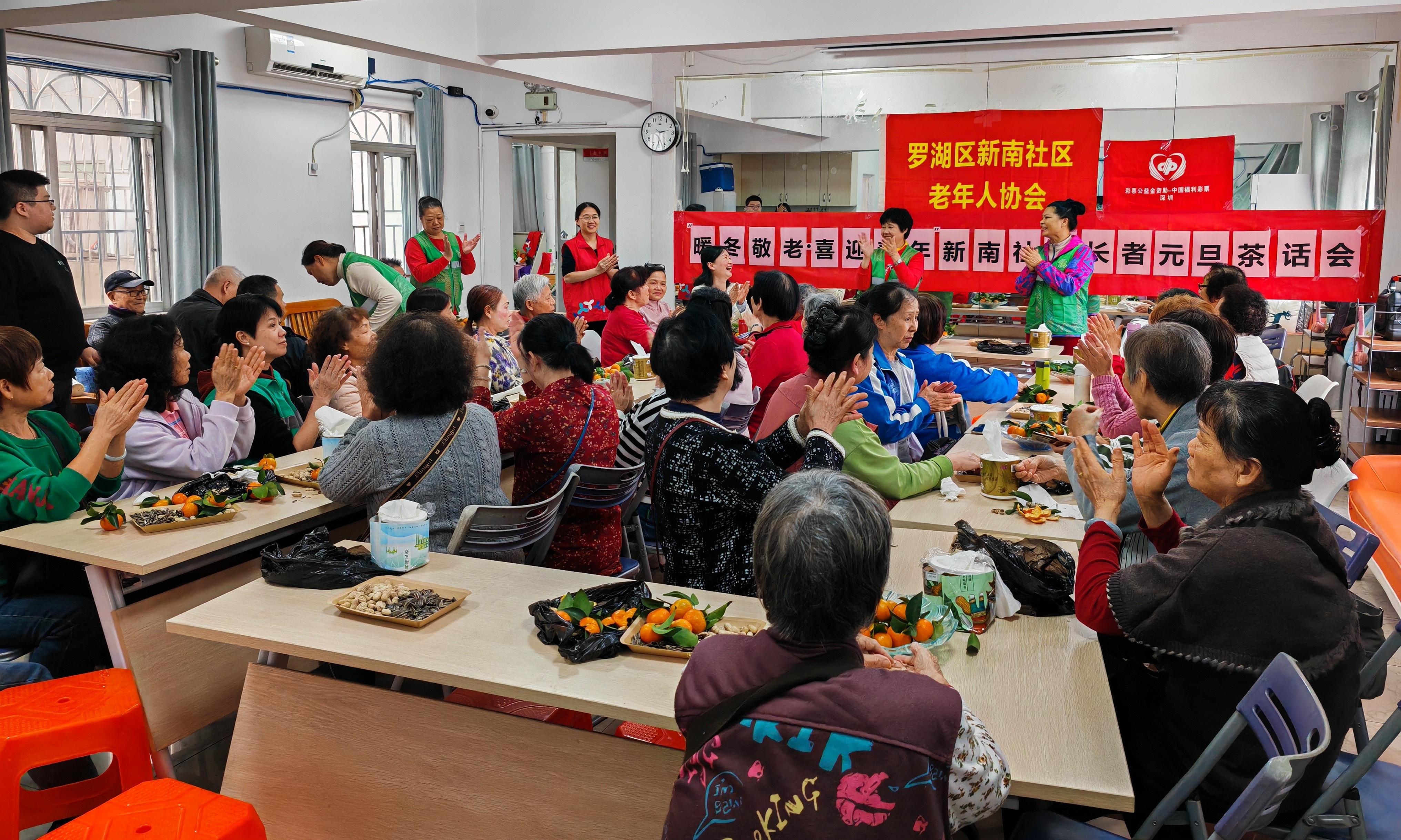 罗湖家园网讯:为让辖区长者老有所乐、老有所享,搭建邻里互助交流平台,营造敬老爱老的良好社区氛围,传递社区暖心服务温度,新南社区党群服务中心联合社区老年人协会于12月29日在高嘉花园开展“暖冬敬老・喜迎新年”长者元旦茶话会,46名社区长者欢聚一堂,共话家常、共迎佳节,现场洋溢着温馨祥和的氛围。