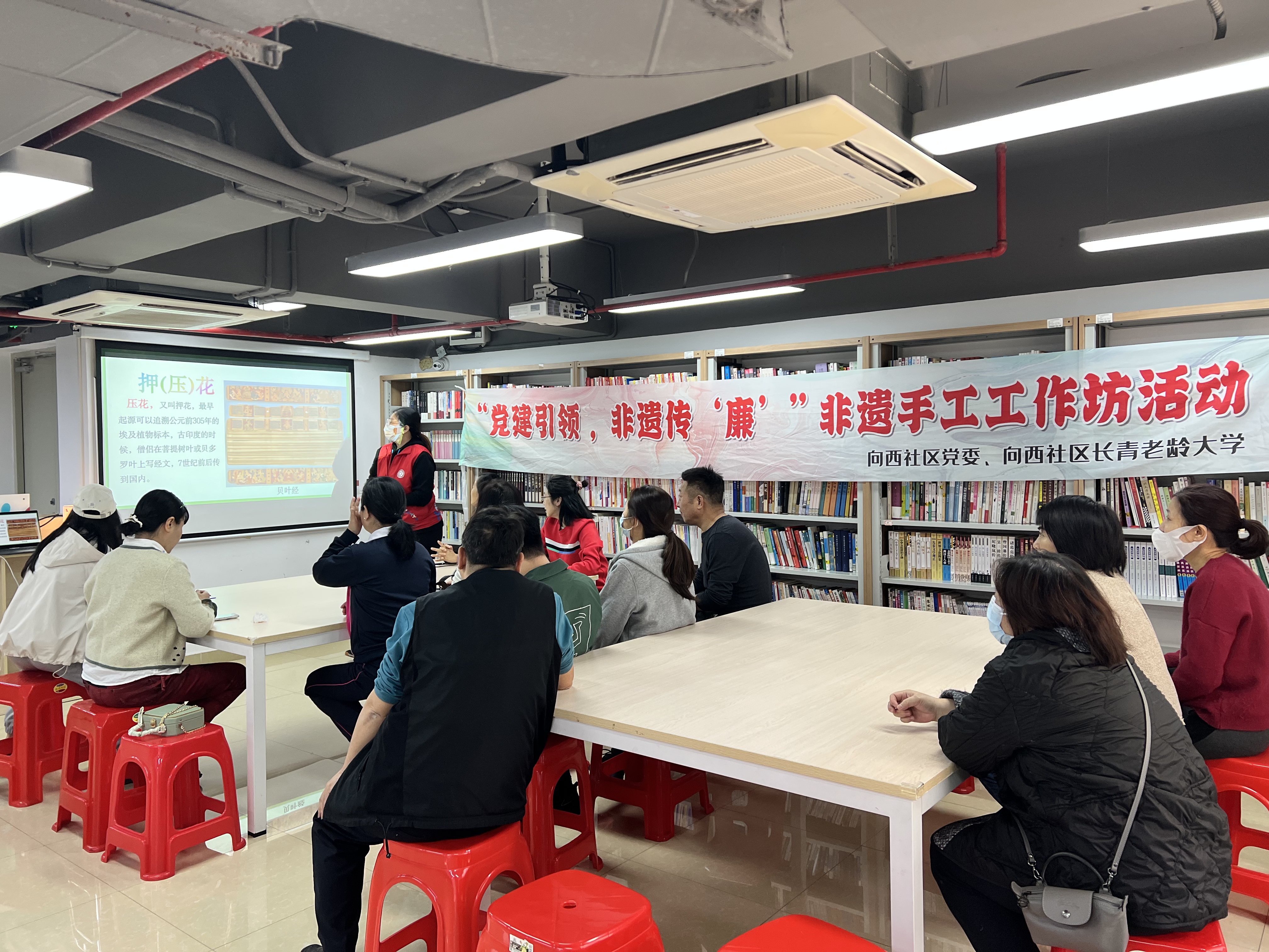 罗湖家园网讯:为弘扬传统文化,传承非物质文化遗产,丰富社区文化生活,同时加强社区居民的党性教育和廉洁自律意识,向西社区党群服务中心于1月3日举办了“党建引领,非遗传‘廉’”非遗压花手工工作坊活动。