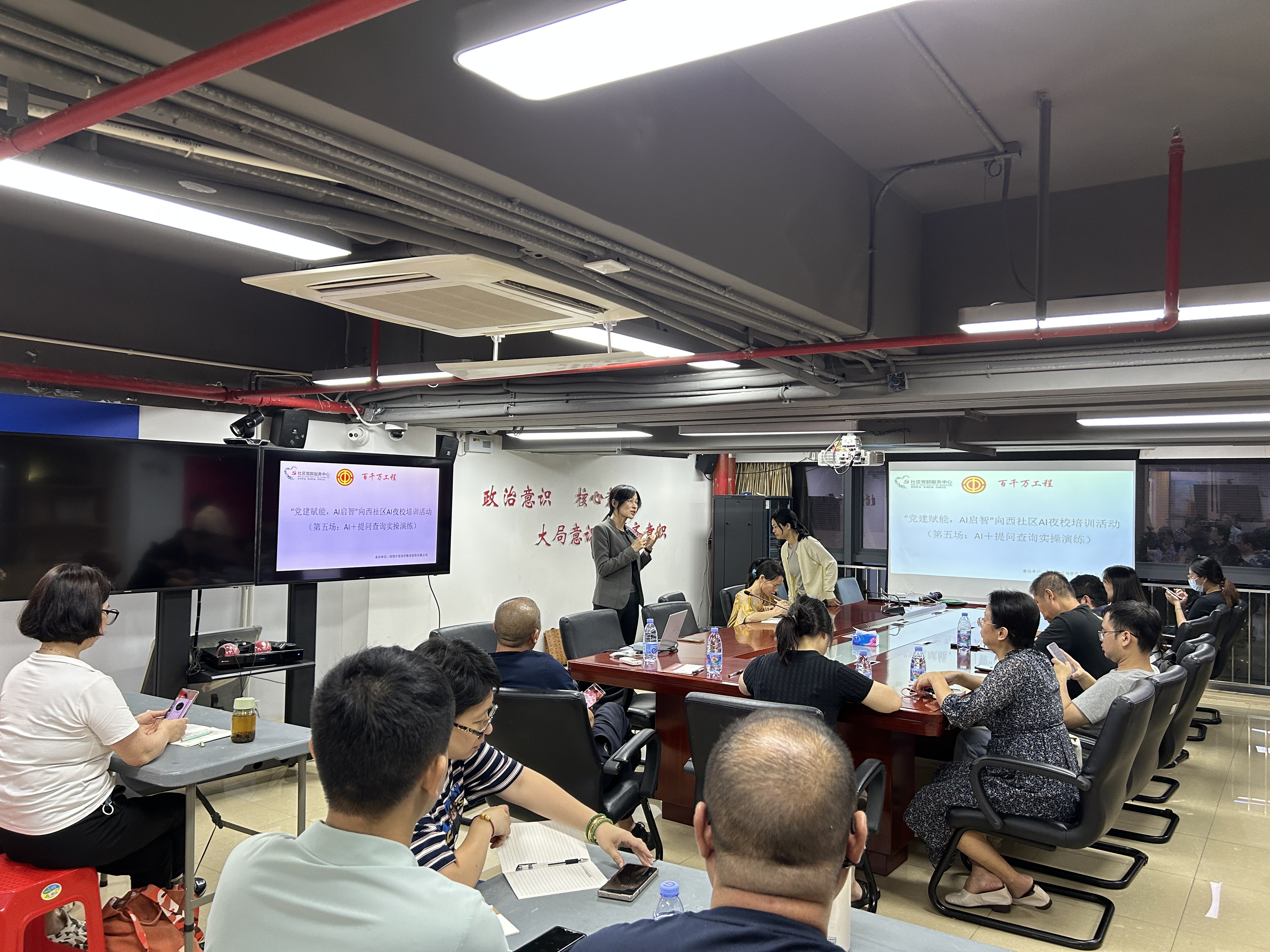 罗湖家园网讯:6月3日晚,向西社区党委、向西社区工联会开展“党建赋能,AI启智”AI夜校培训第五期(AI+提问查询实操演练),共吸引了30多名党员、居民、企业职工参加。