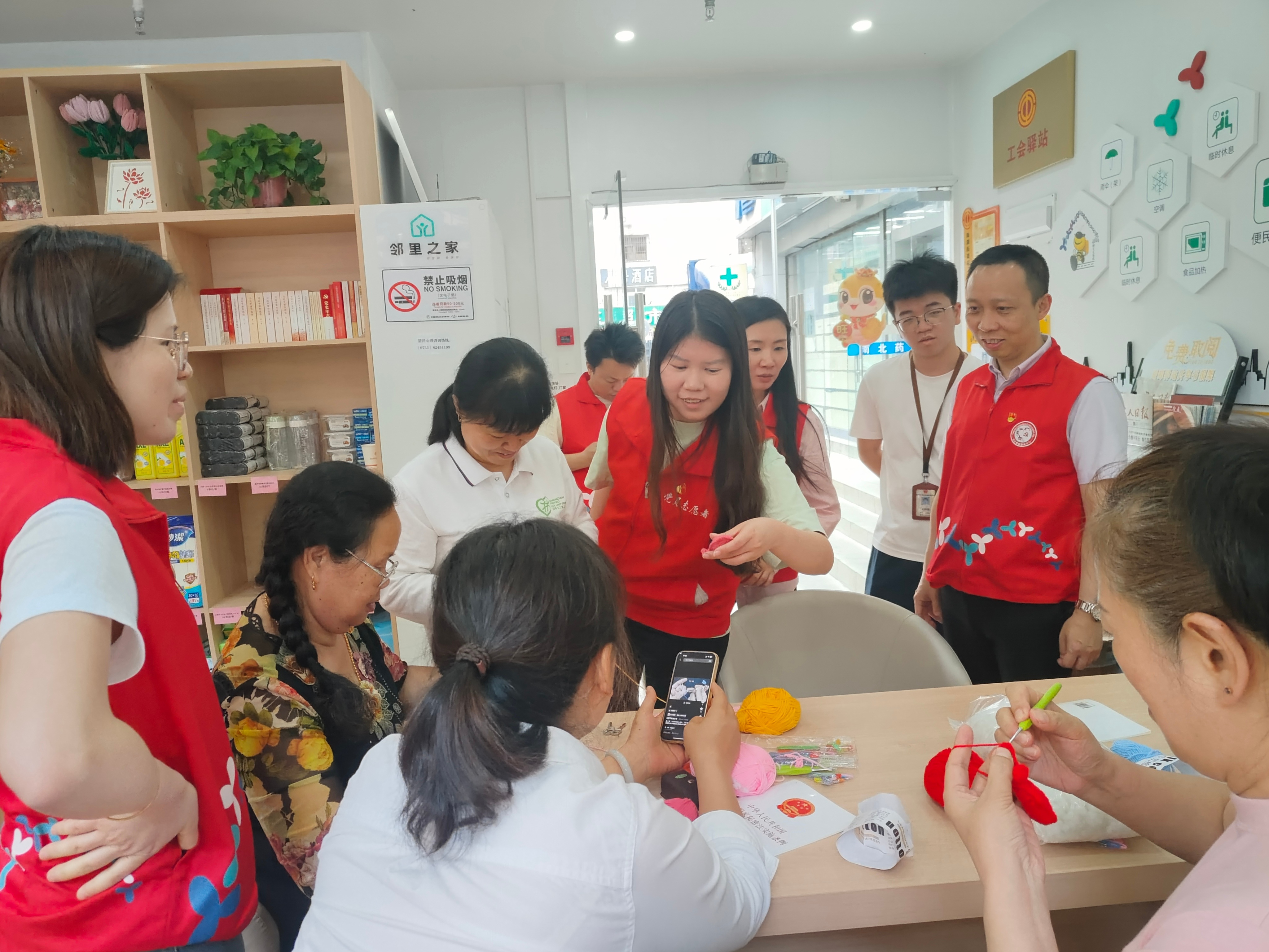 罗湖家园网讯:每周四下午,向西社区为居民提供编织交流平台,同时定期将钩针编织品通过便民集市进行义卖,筹集善款,用于帮扶社区困难群体。