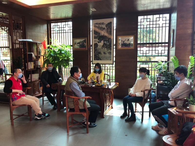 渔邨社区党委书记李竞向渔民村居委会主任邓锦辉了解居民情况