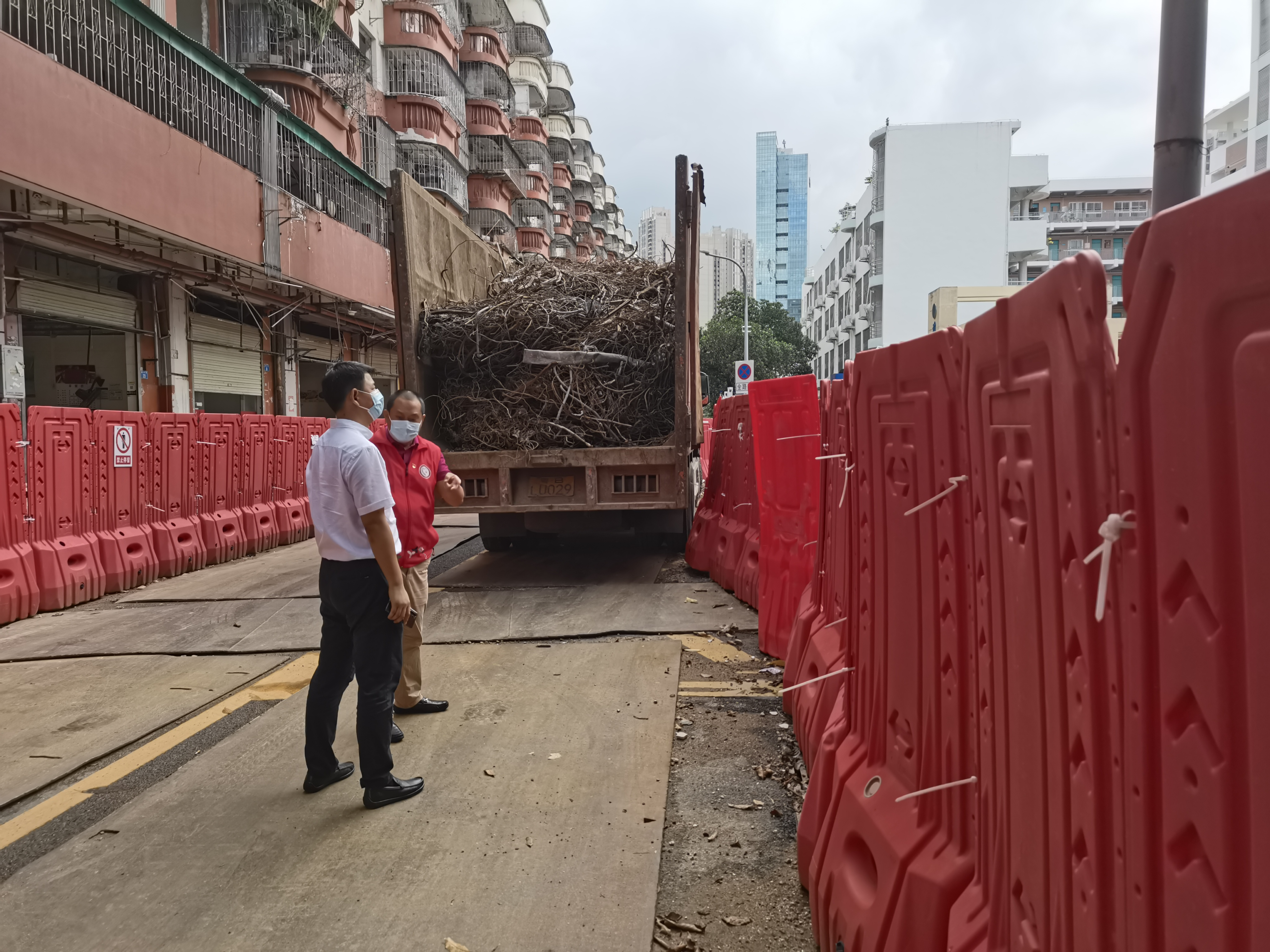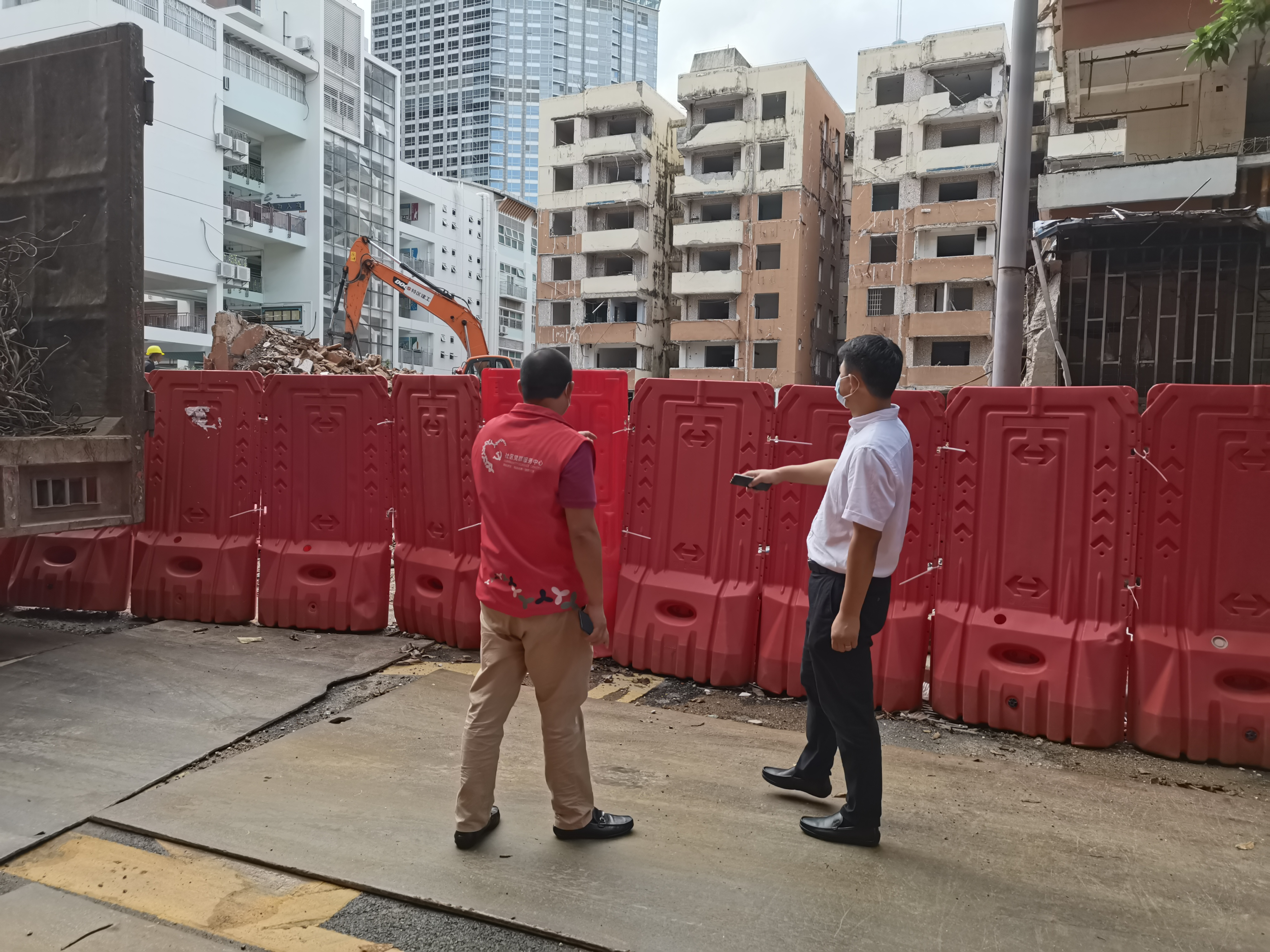 渔邨社区讯:8月19日上午,渔邨第一书记李小斌与渔邨社区副站长余利明对辖区棚改区域进行巡查,要求施工单位负责人要落实三防值班值守工作并排查存在危险因素,发现问题立即整改,对在建工地提出按要求停工并检查是否存在安全隐患,在辖区危险区域要求拉警戒线预防隔离。