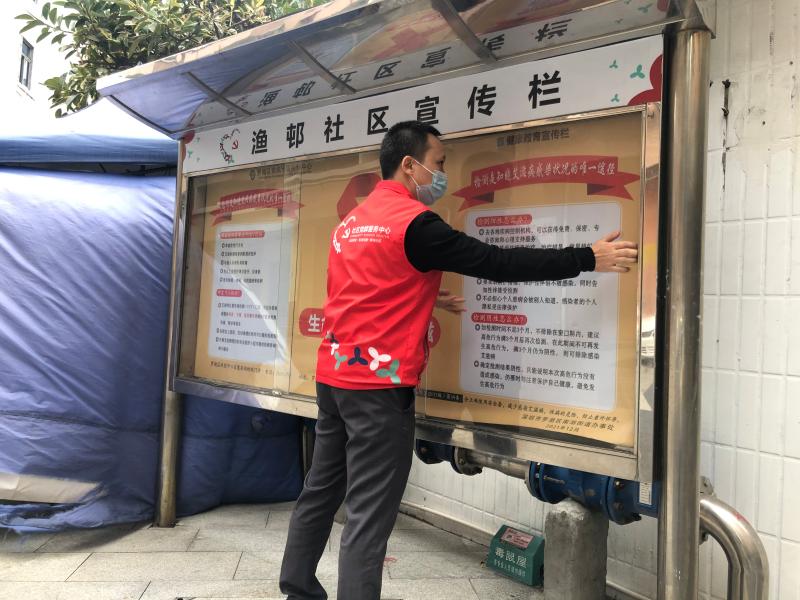 渔邨社区党委副书记史庆明对社区宣传栏乱涂乱贴现象进行整改