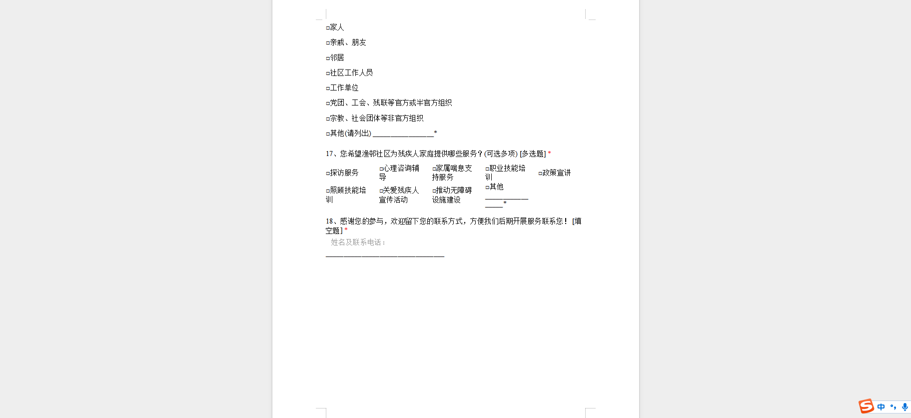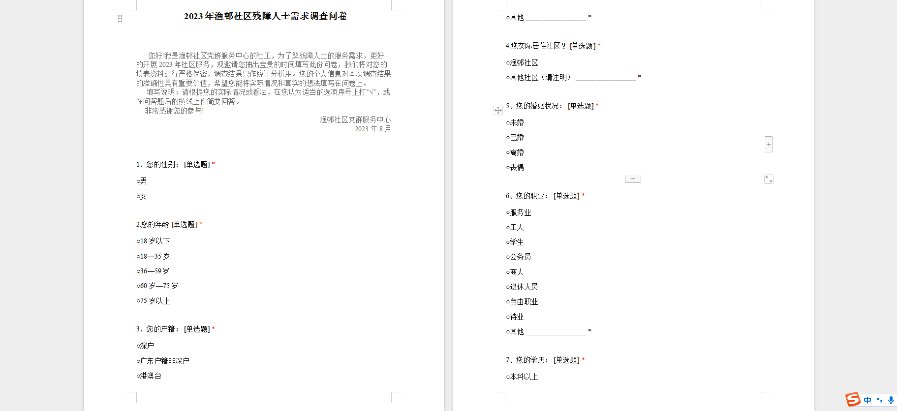 2023年渔邨社区残障人士需求调查问卷:https://www.wjx.cn/vm/OWcIKrh.aspx