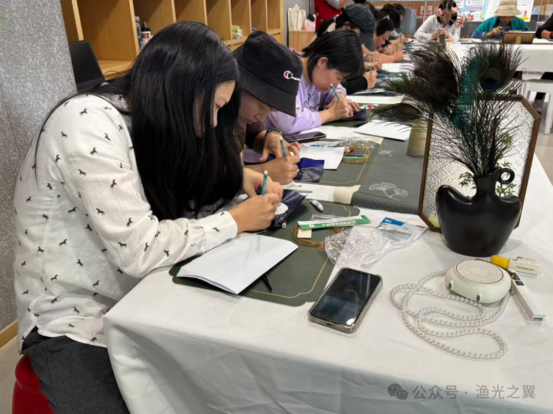 课堂以“知识+实操”推进:首场前半程,杨杨老师带大家了解明清掐丝珐琅源流与经典纹样寓意,在故事中触摸古老工艺;后半程聚焦实操,不少人遇细密纹路犯怵,仍攥着镊子反复调整。中途提议歇茶,大家头都不抬忙掐丝,笑言“先把这圈掐完”;更有学员带未完成作品回家“加班”,这份手作执着太动人~