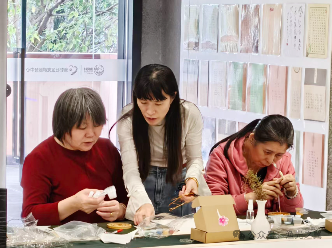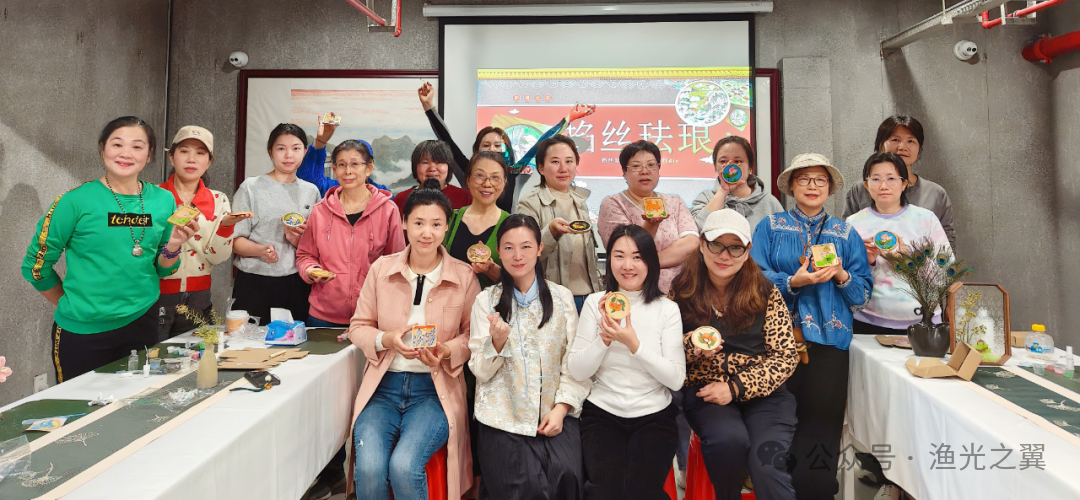 罗湖家园网讯:细铜丝绕纹,彩砂晕色——近日,“芳华筑梦·创艺同行”成长计划之掐丝珐琅杯垫DIY课堂分两场开讲,20位参与者全程参与,用两节课的专注与坚持,让千年宫廷非遗技艺走进日常。