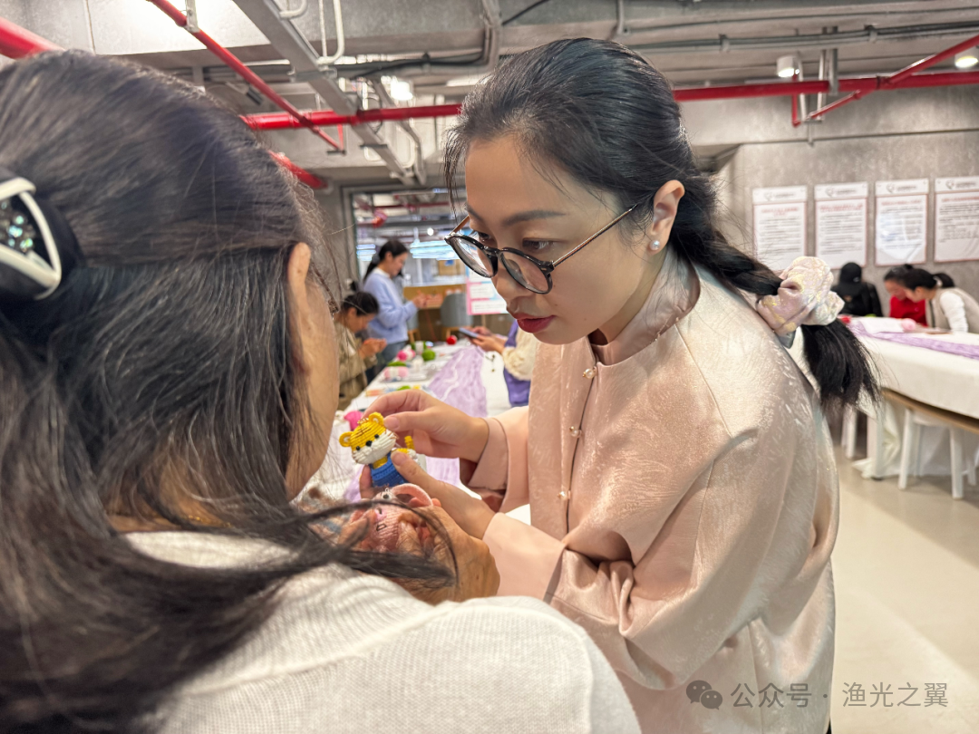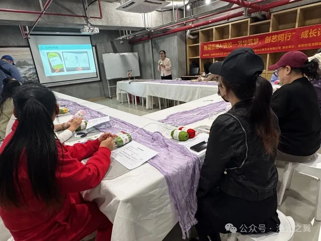 活动伊始,老师从钩织基础知识切入,细致讲解了毛线材质选择、钩织工具的使用方法,随后通过手把手示范。“左手持线要松紧适度,右手钩针挑起线环时力度要均匀”,老师耐心纠正着大家的姿势,用通俗易懂的语言化解技术难点。