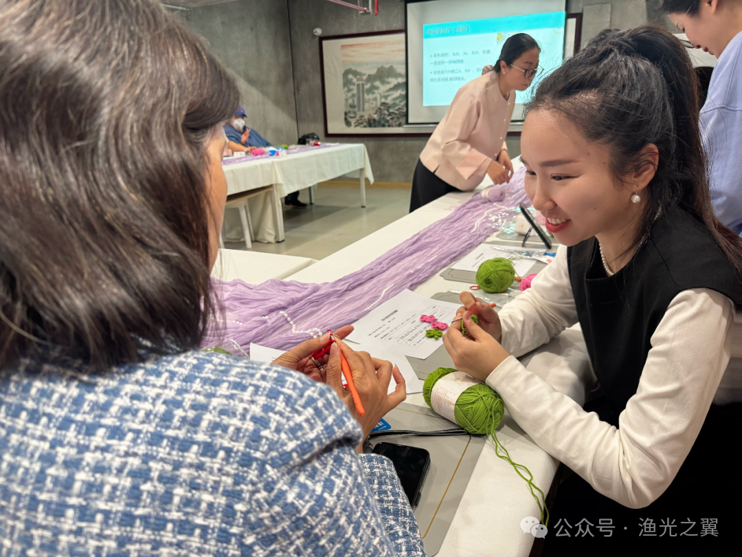 针起针落间,不仅编织出精美的手工作品,更架起了文化交流的桥梁。这场钩织手作活动,既让大家掌握了实用的手工技能,感受了传统手工艺的独特魅力,也为中外友人提供了交流互动的平台,在专注创作中舒缓身心,在互助合作中收获友谊,让指尖的温暖与美好在社区中不断传递。