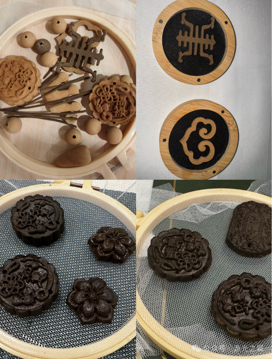 “原来香牌不只是好看,还是老祖宗的‘解压神器’!”在手工制作环节,大家跟着老师将崖柏香粉、玉檀香粉、艾草香粉等香料按比例混合,调制成香泥,压模成型,亲手制成香牌。