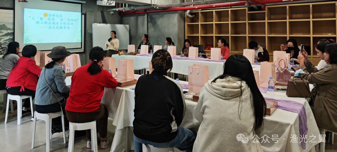 渔邨社区工“惠”悦享 “渔”你相伴职工舒压减压手作活动—永生花微景观