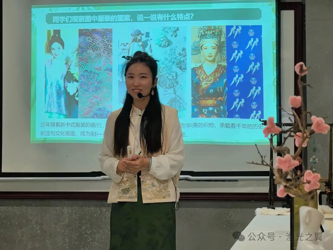 接着用细致讲解了宋锦的分类与纹样寓意:从象征尊贵的“八达晕”纹样,到寓意吉祥的“凤穿牡丹”,再到清雅灵动的花鸟动物纹样,每一寸宋锦都承载着古人的审美意趣与文化密码。在场学员纷纷表示,原本只在博物馆里见过的宋锦,如今变得鲜活而亲切。